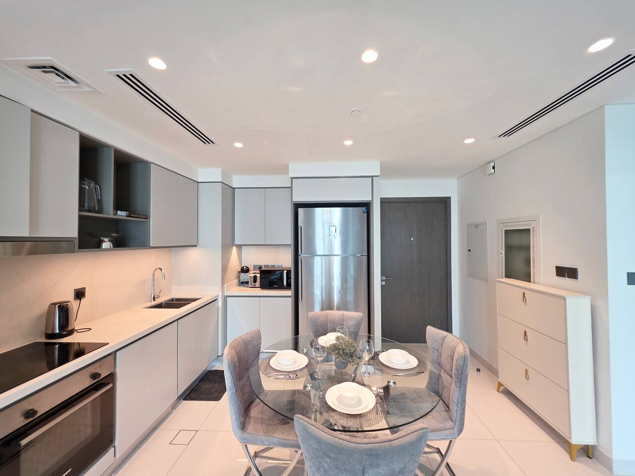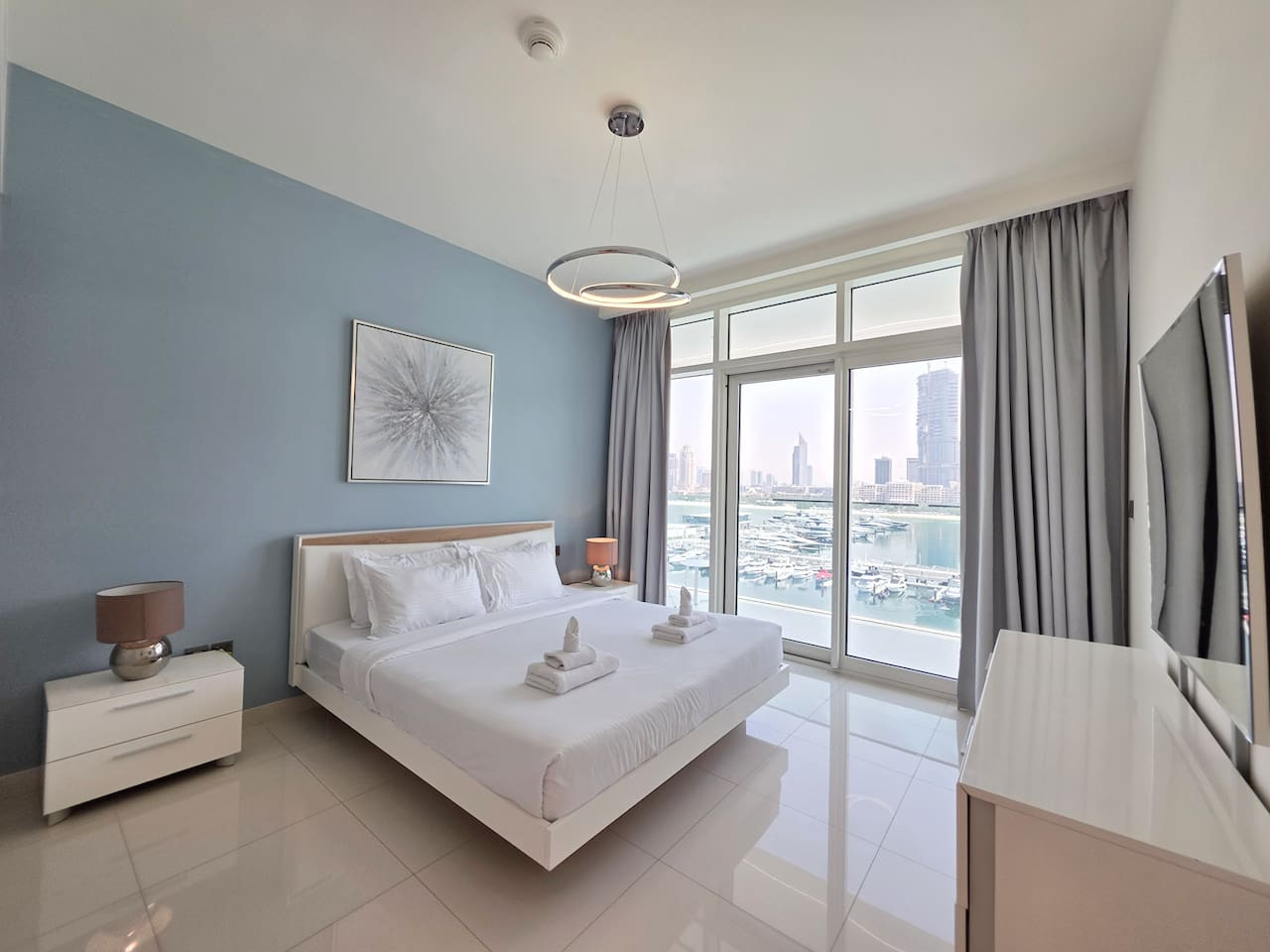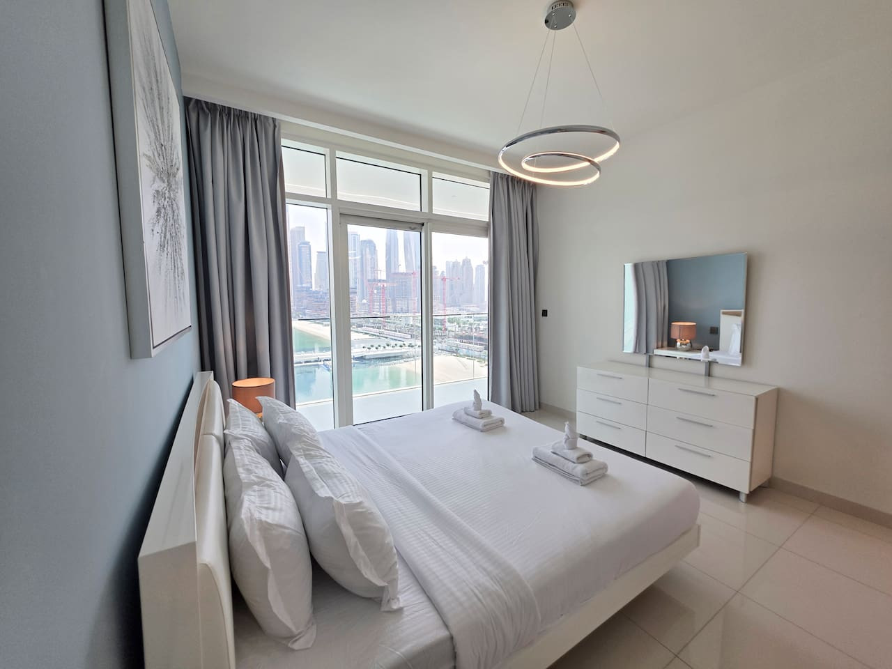 Wake up to stunning marina views in this stylish 2BR apartment in Sunrise Bay, Emaar Beachfront. Enjoy direct access to a private beach, perfect for relaxing or sunset walks. The apartment features a bright living area, fully equipped kitchen, comfortable bedrooms, and a private balcony overlooking the water. Located minutes from Dubai Marina, with easy access to dining, shopping, and attractions, it’s ideal for families, couples, or business travelers seeking a premium seaside stay.