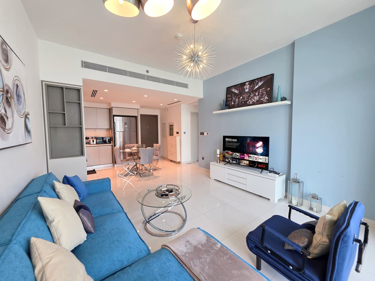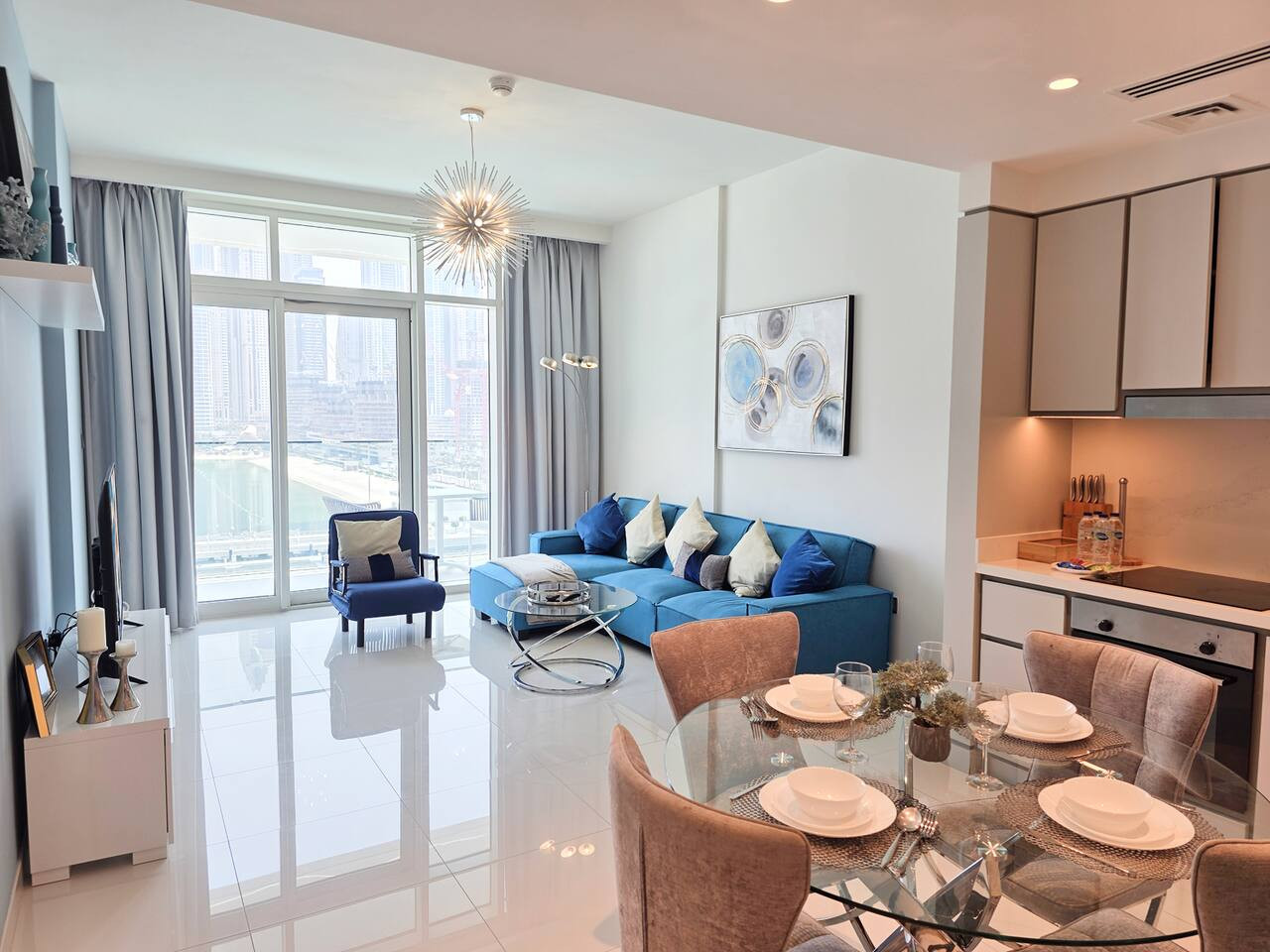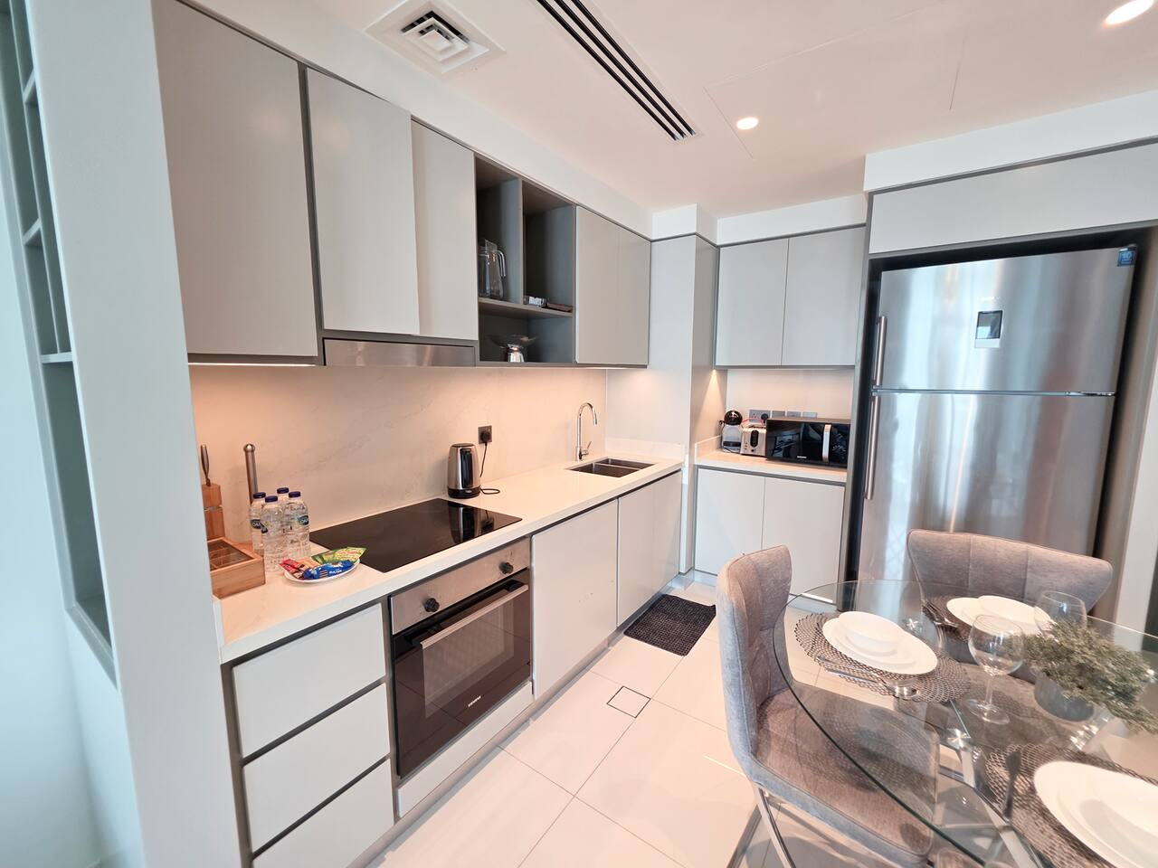 Wake up to stunning marina views in this stylish 2BR apartment in Sunrise Bay, Emaar Beachfront. Enjoy direct access to a private beach, perfect for relaxing or sunset walks. The apartment features a bright living area, fully equipped kitchen, comfortable bedrooms, and a private balcony overlooking the water. Located minutes from Dubai Marina, with easy access to dining, shopping, and attractions, it’s ideal for families, couples, or business travelers seeking a premium seaside stay.