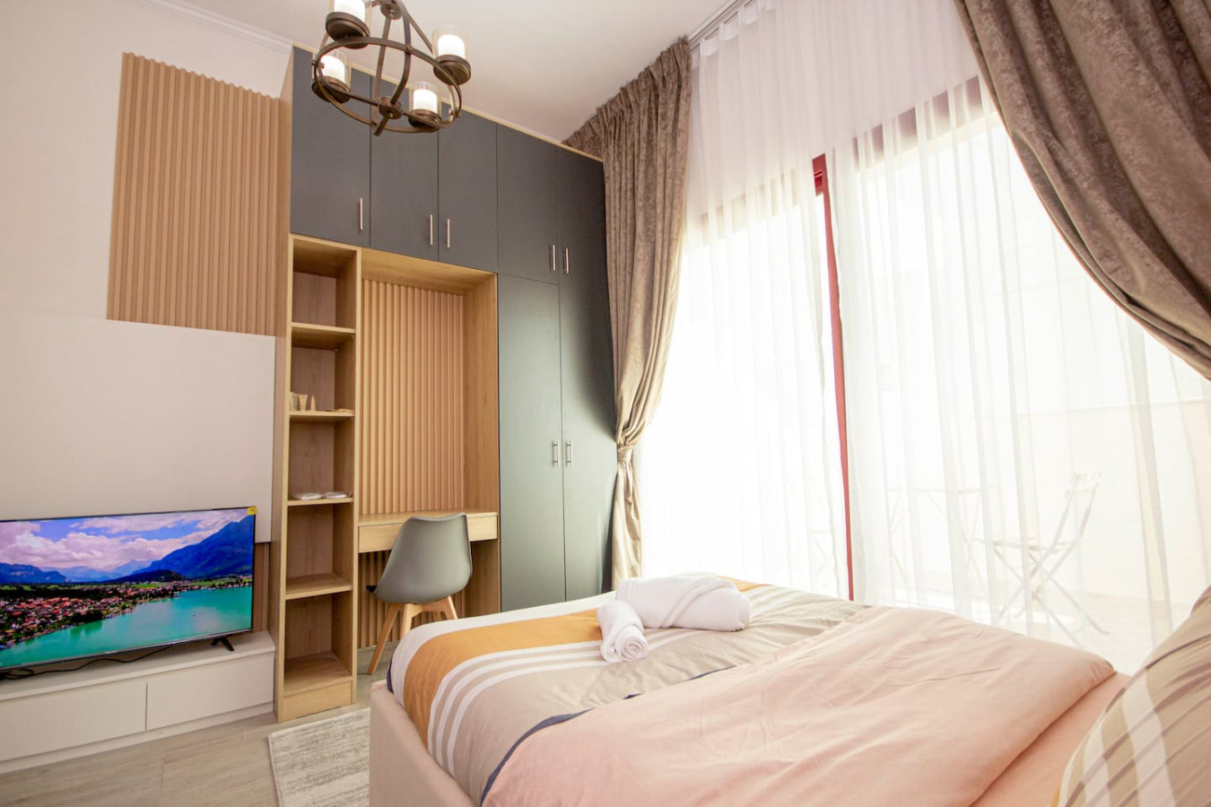 Living Area: Sofa Bed, Smart TV, WIFI.