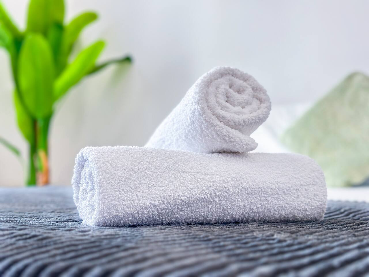 > Fresh towels and basic toiletries