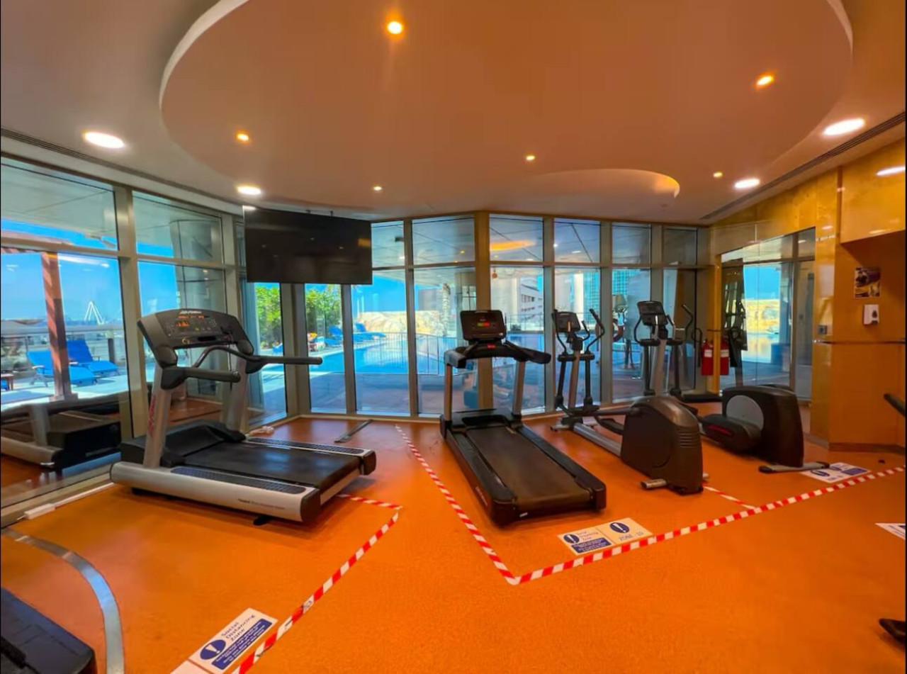 Stay fit and relax in the spa facilities, featuring modern equipment and wellness services. Additional charges may apply for use of the sauna or steam room.