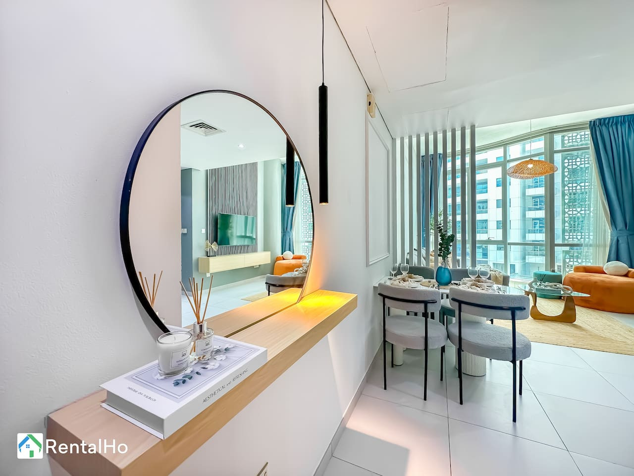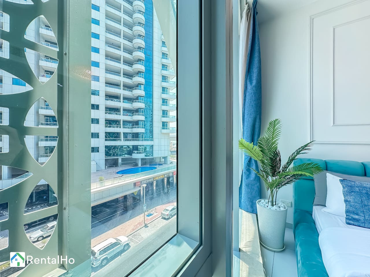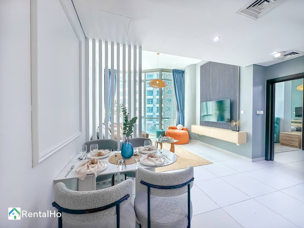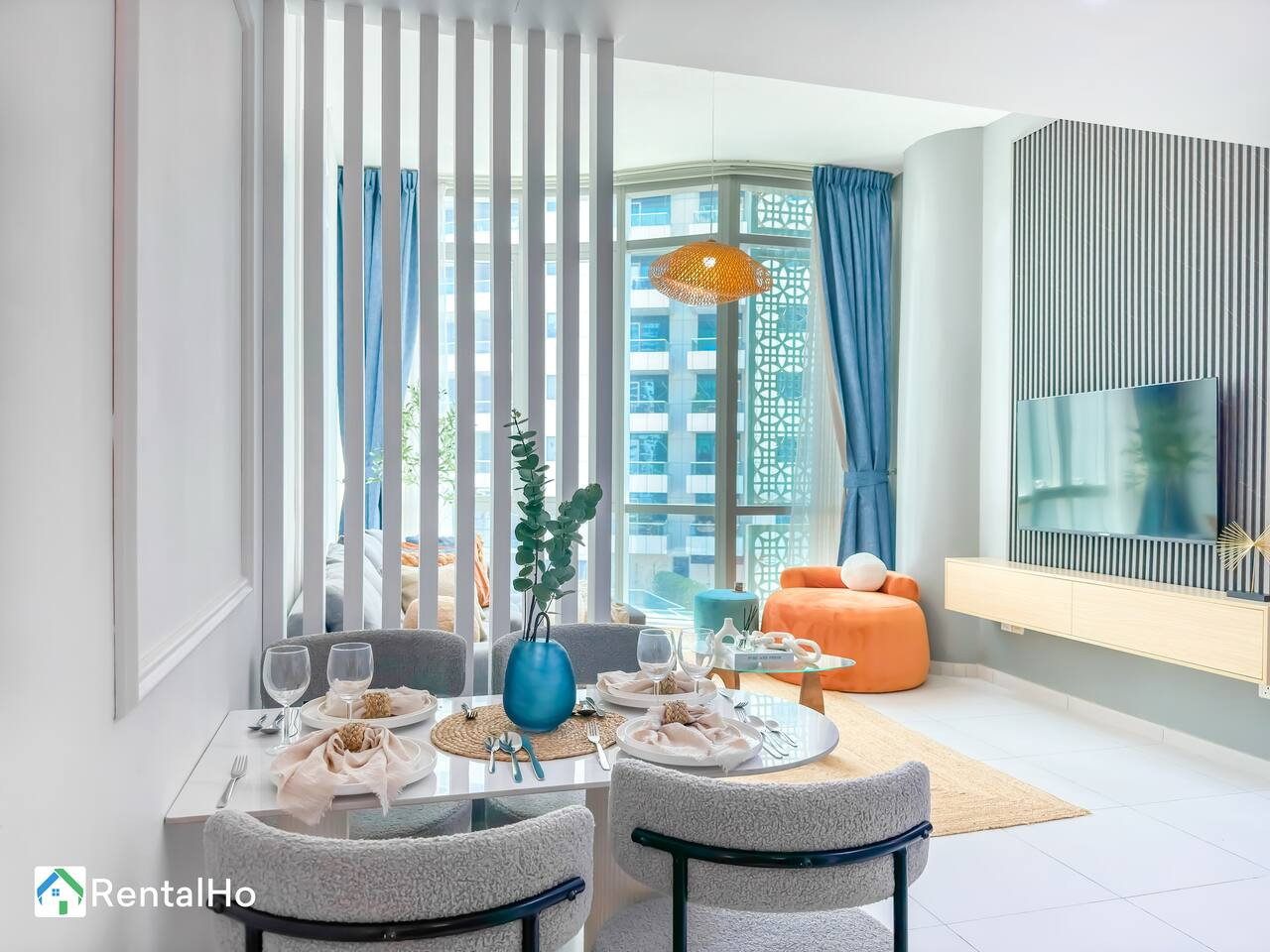 5,700 per night1BHK apartment in Panoramic Tower, Dubai Marina, offers a modern space with a bright living room and floor-to-ceiling windows that capture natural light. The thoughtful design and quality finishes ensure a relaxing atmosphere.