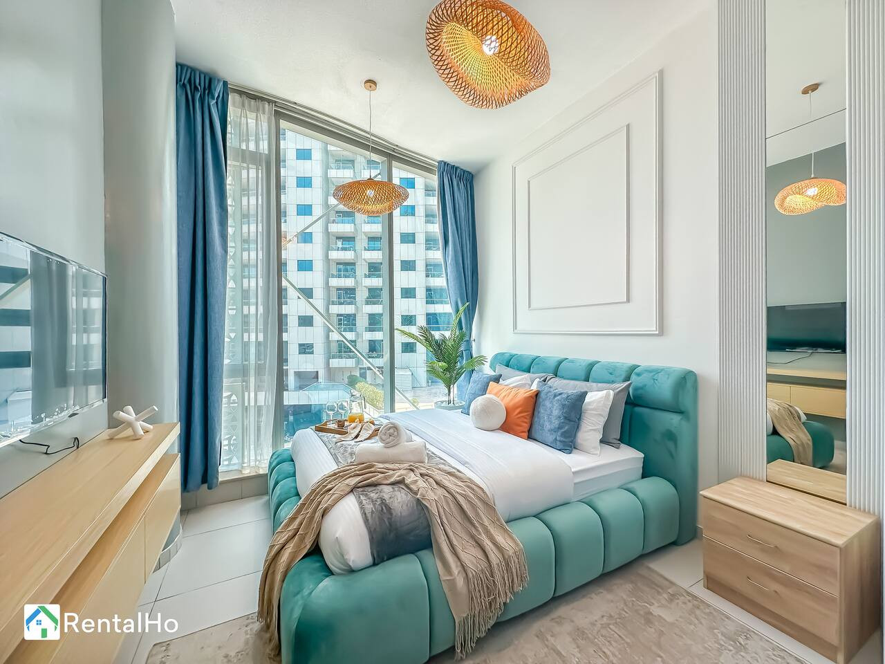 Located on the 3rd floor of Panoramic Tower, in the heart of Dubai Marina, minutes from BlueWater Island, the beach, and JBR. It features a modern, fully-equipped kitchen, a living room with a sofa, a smart TV, and a work desk with fast internet access. A guest bathroom and washing machine are included for your convenience.