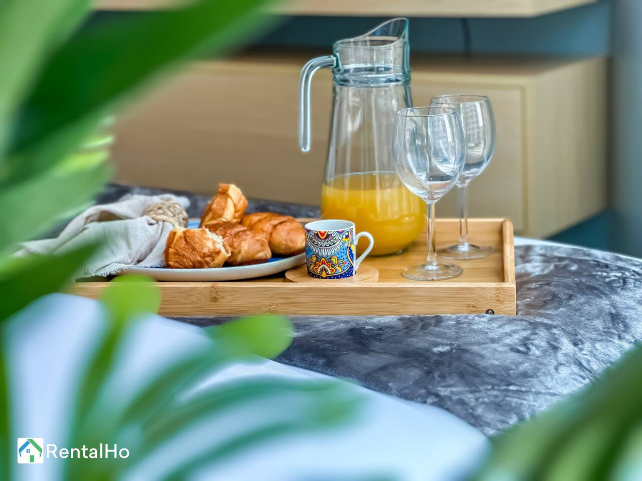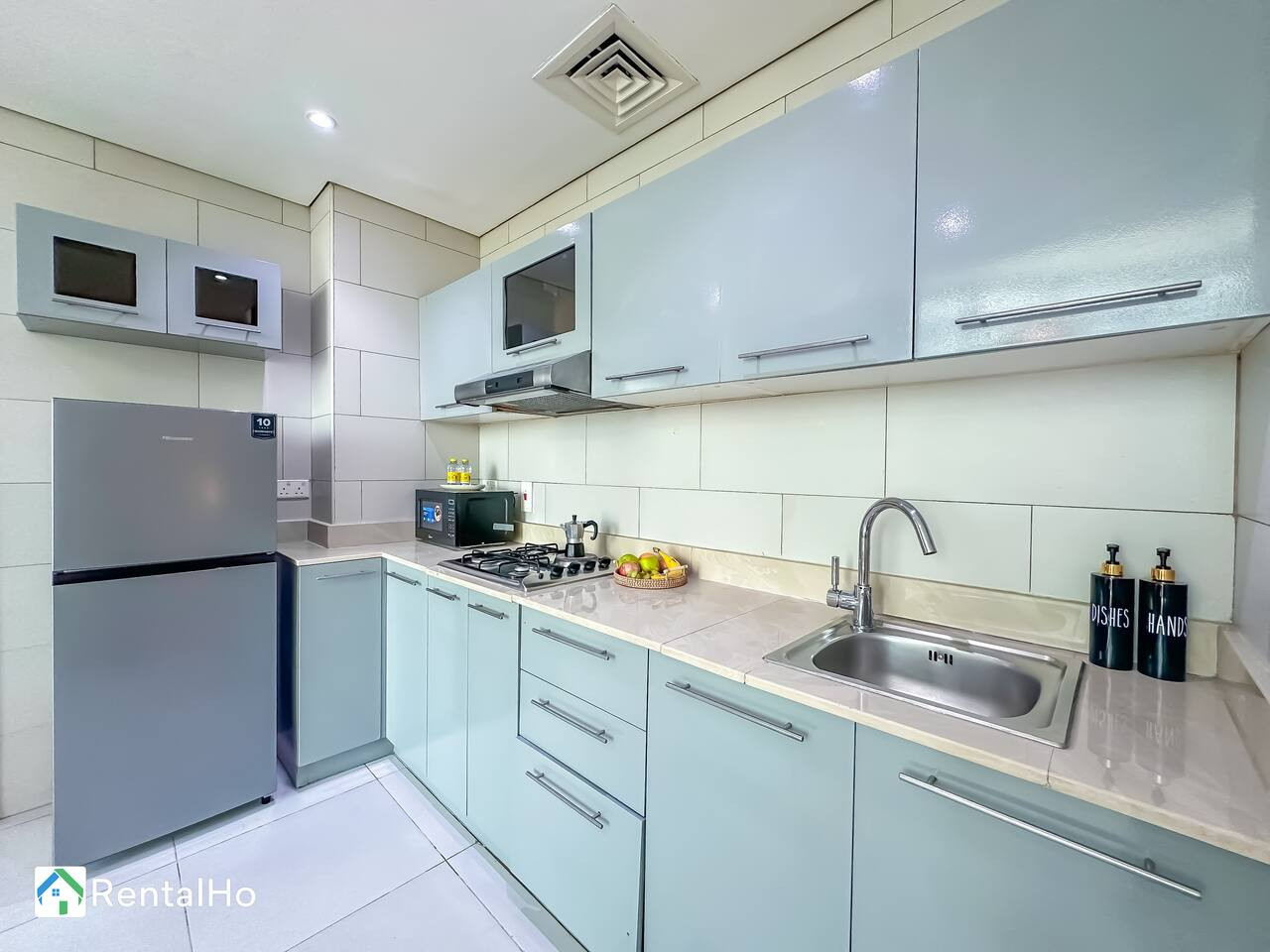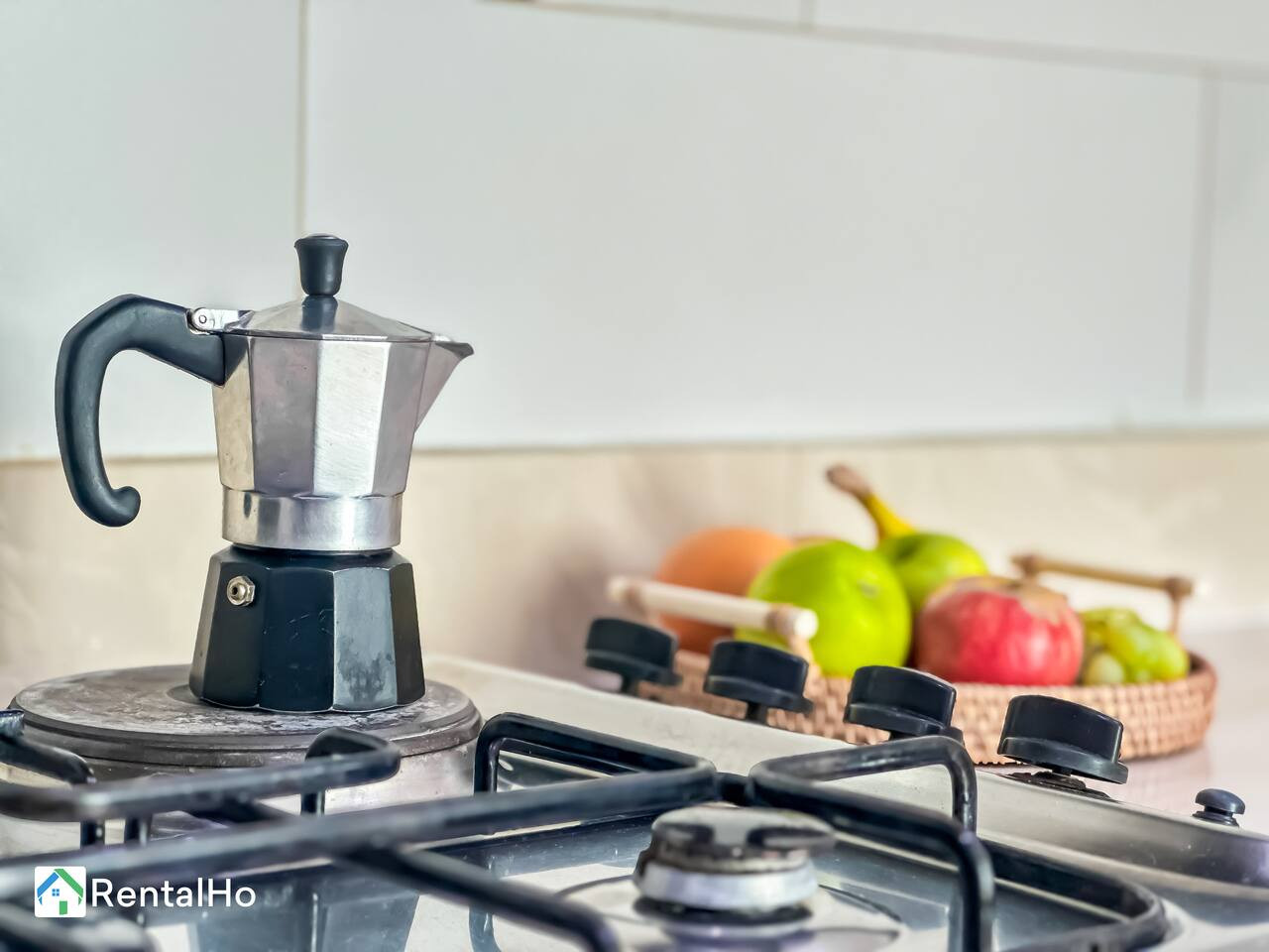 The fully equipped kitchen has everything you need for a comfortable stay. Prepare your favorite dishes with ease using modern appliances and enjoy your meals at home.