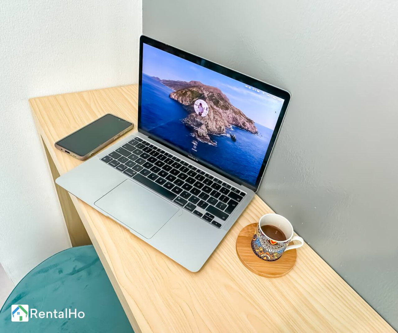 Designed for your rest, this apartment offers a queen-size bed with premium bedding. Additionally, there is a single sofa bed for one person and an air mattress for two guests.