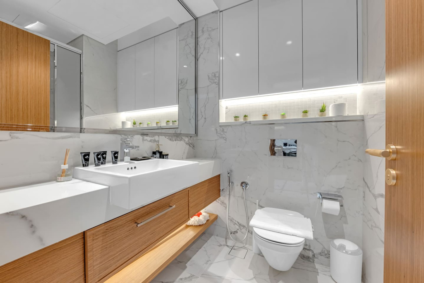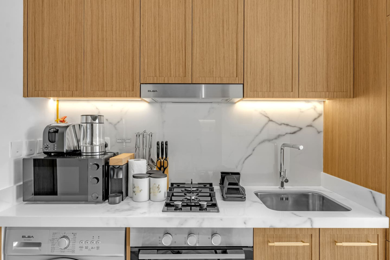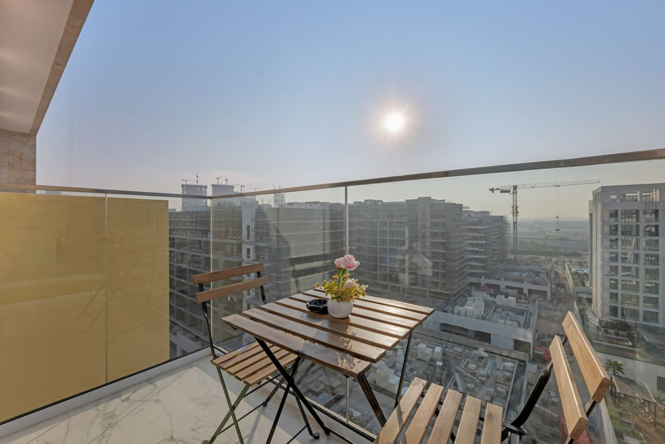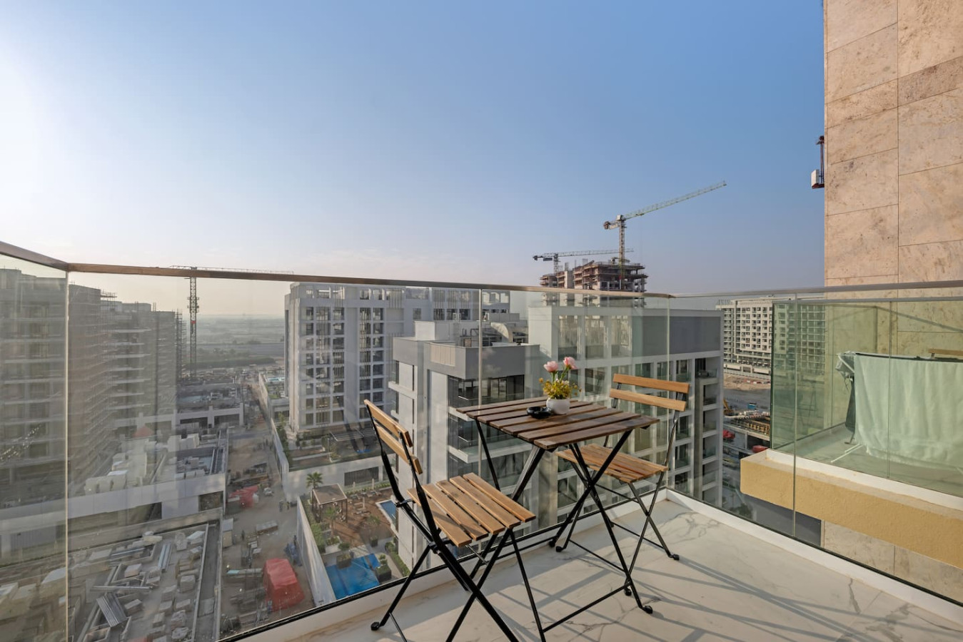 This stylish studio offers a sophisticated home away from home in Dubai. The open-plan layout features a comfortable bed, a designer kitchenette, and a spa-inspired bathroom with luxury amenities. Bright natural light fills the space, highlighting its contemporary elegance