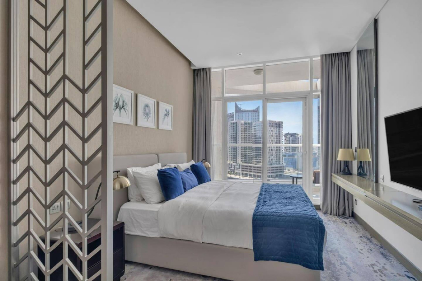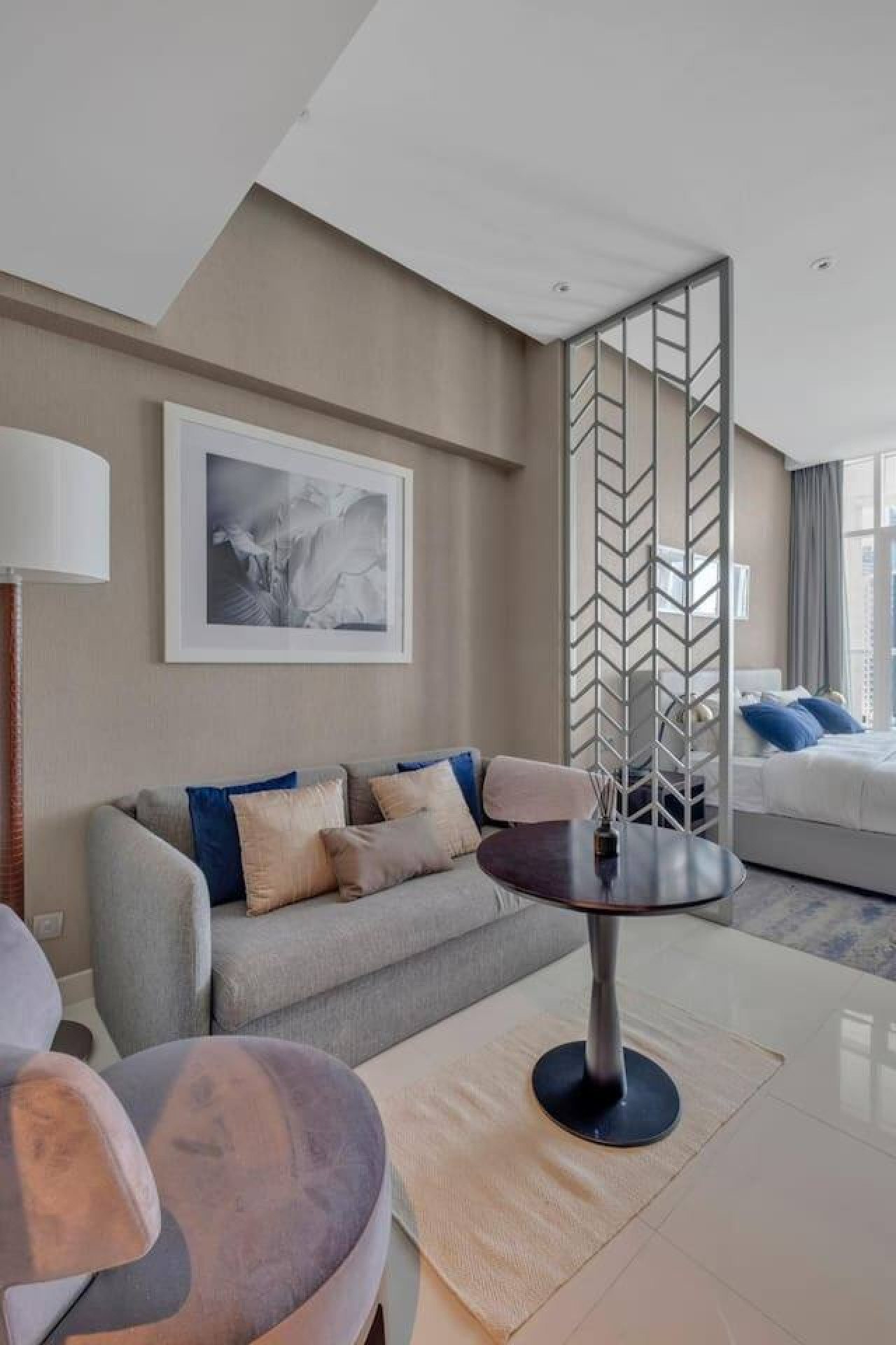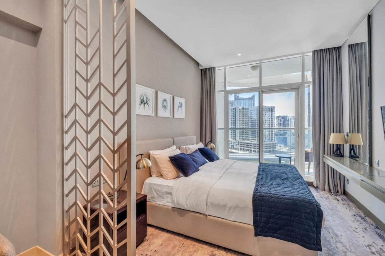 Modern 5-star hotel apartment in Downtown Dubai with a large private balcony overlooking the canal, Burj Khalifa, and pool. Located on a high floor, it offers stunning sunset views and sleek interiors. The flat features a sofa bed, 58” Smart TV, and free valet parking. Just a 10-minute walk to Dubai Mall, with Carrefour supermarket in the building. Enjoy access to a gym, spa, and an on-site shisha restaurant.