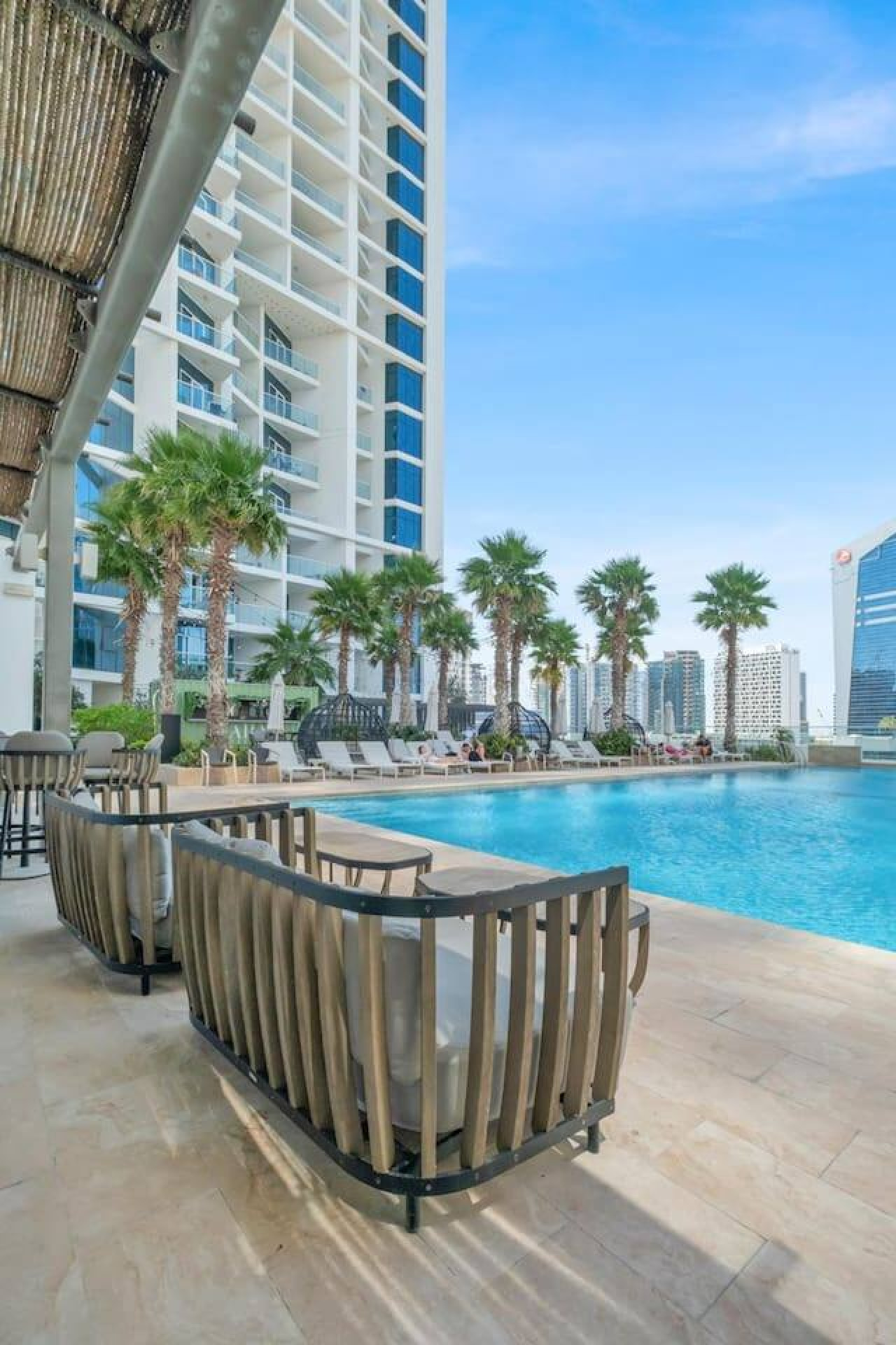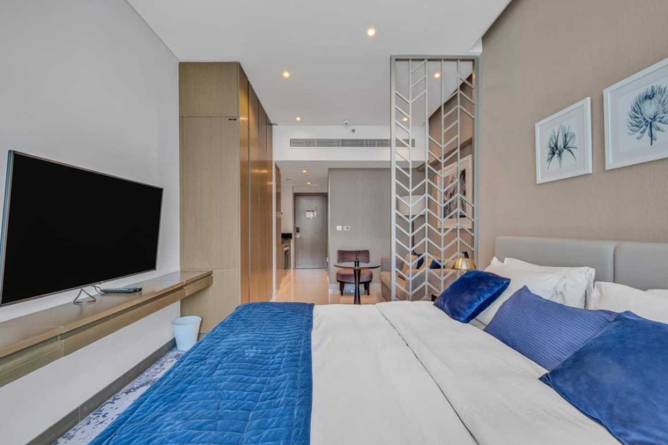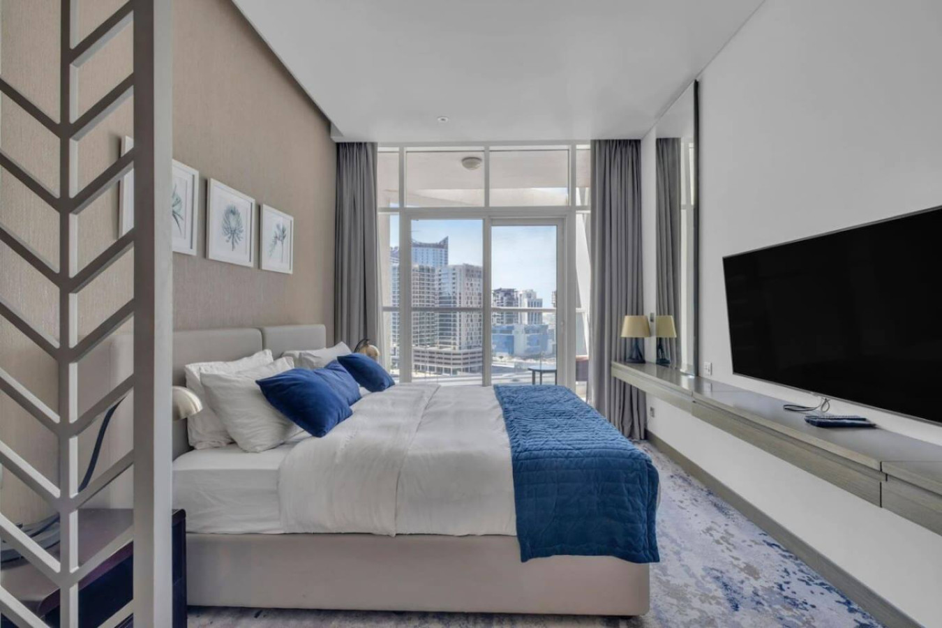 Modern 5-star hotel apartment in Downtown Dubai with a large private balcony overlooking the canal, Burj Khalifa, and pool. Located on a high floor, it offers stunning sunset views and sleek interiors. The flat features a sofa bed, 58” Smart TV, and free valet parking. Just a 10-minute walk to Dubai Mall, with Carrefour supermarket in the building. Enjoy access to a gym, spa, and an on-site shisha restaurant.