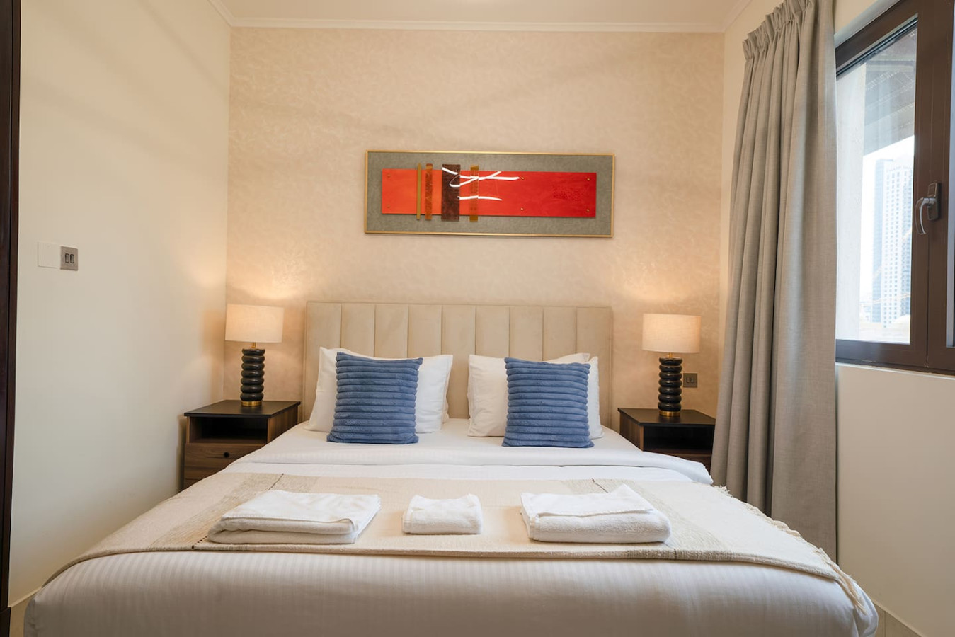 Make yourself at home and relax on the plush sofa, catch up on your favorite shows, relax while planning your next adventure in downtown Dubai!