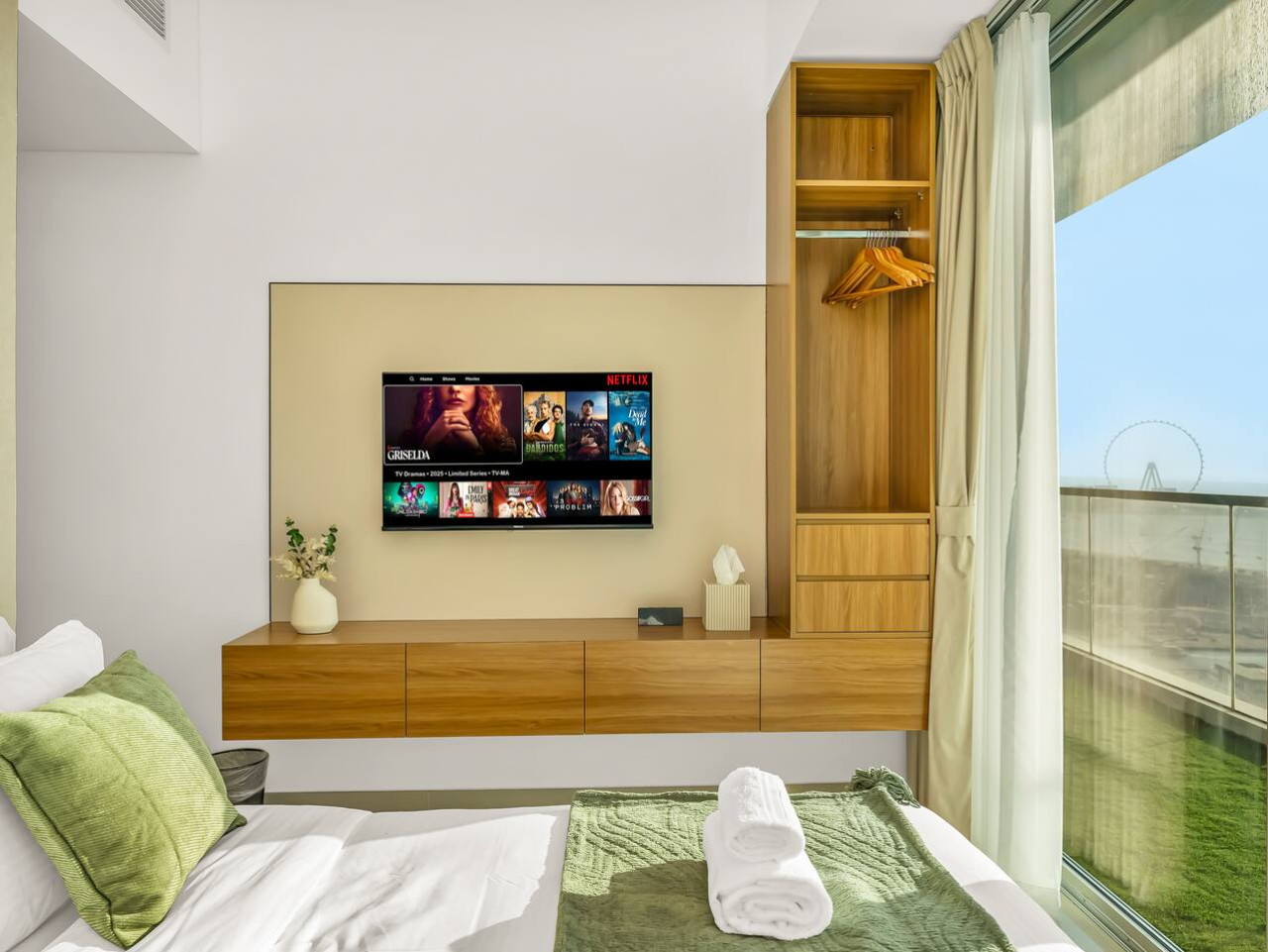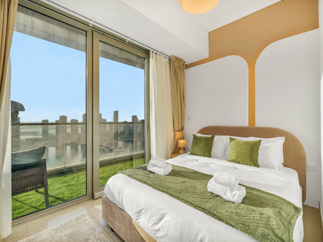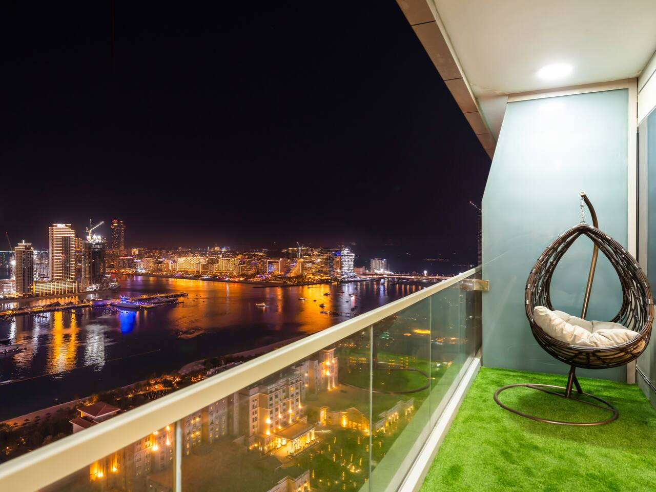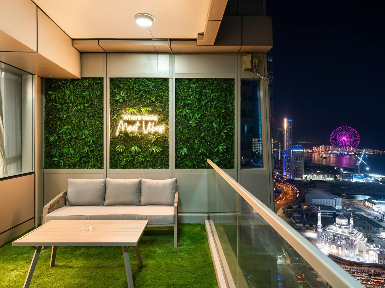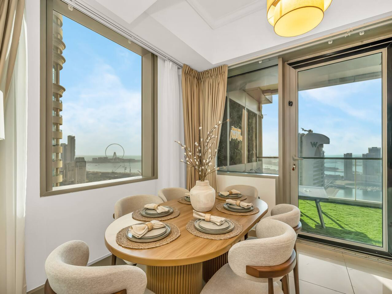 This expansive balcony invites you to relax and unwind with stunning views of Ain Dubai, Palm Jumeirah, and Burj Al Arab, as well as urban skyline vistas of Dubai Marina and JBR.
