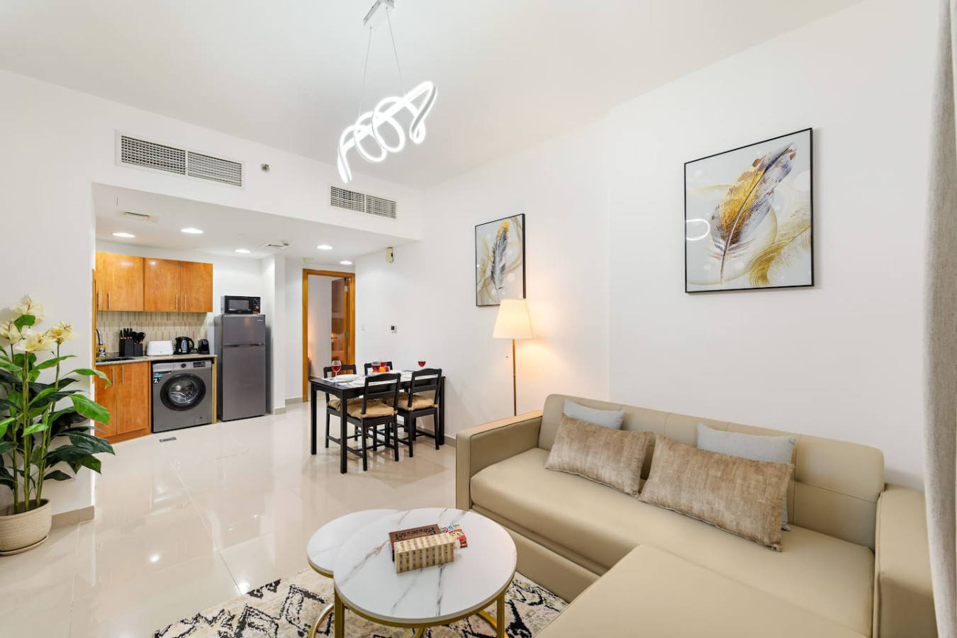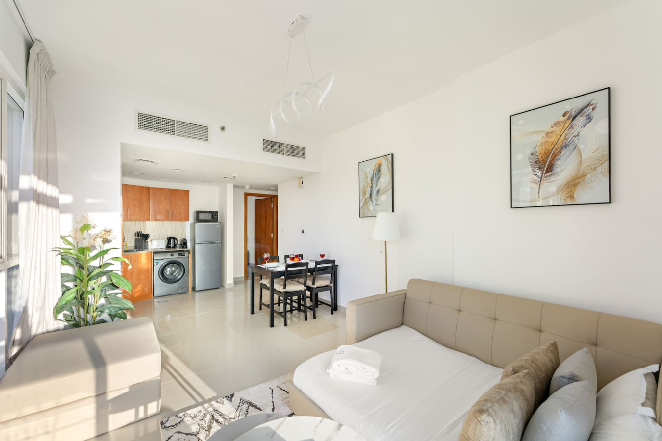 It is fully equipped with stainless-steel cooking appliances that make it suitable for preparing any meal, whether a simple breakfast, quick snack or a three-course gourmet dinner. Spacious quartz countertops and a central kitchen island provide plenty of room to work your MasterChef magic.