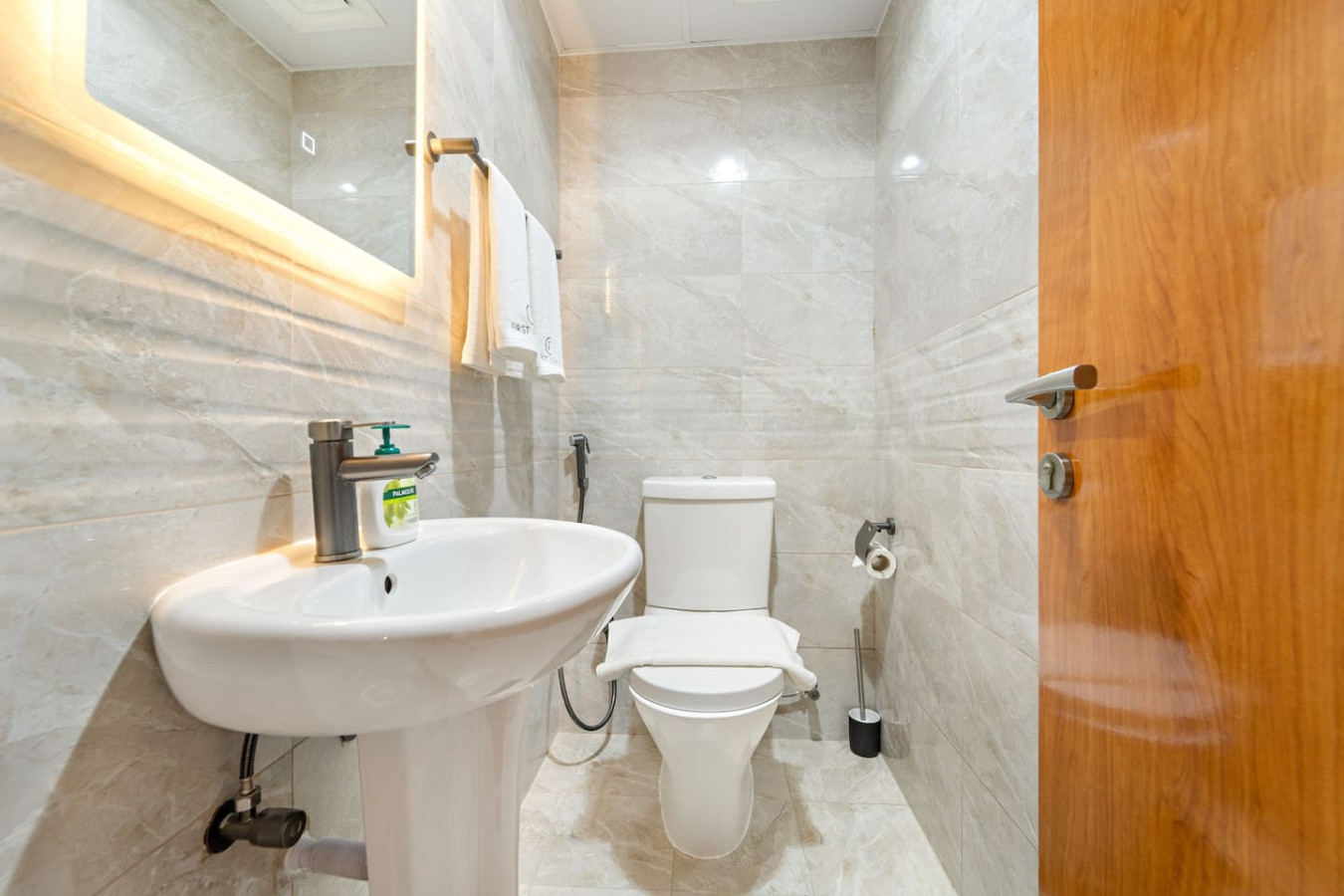 The bathroom is stocked with fresh towels and essential toiletries, so you don’t have to worry about bringing your own.