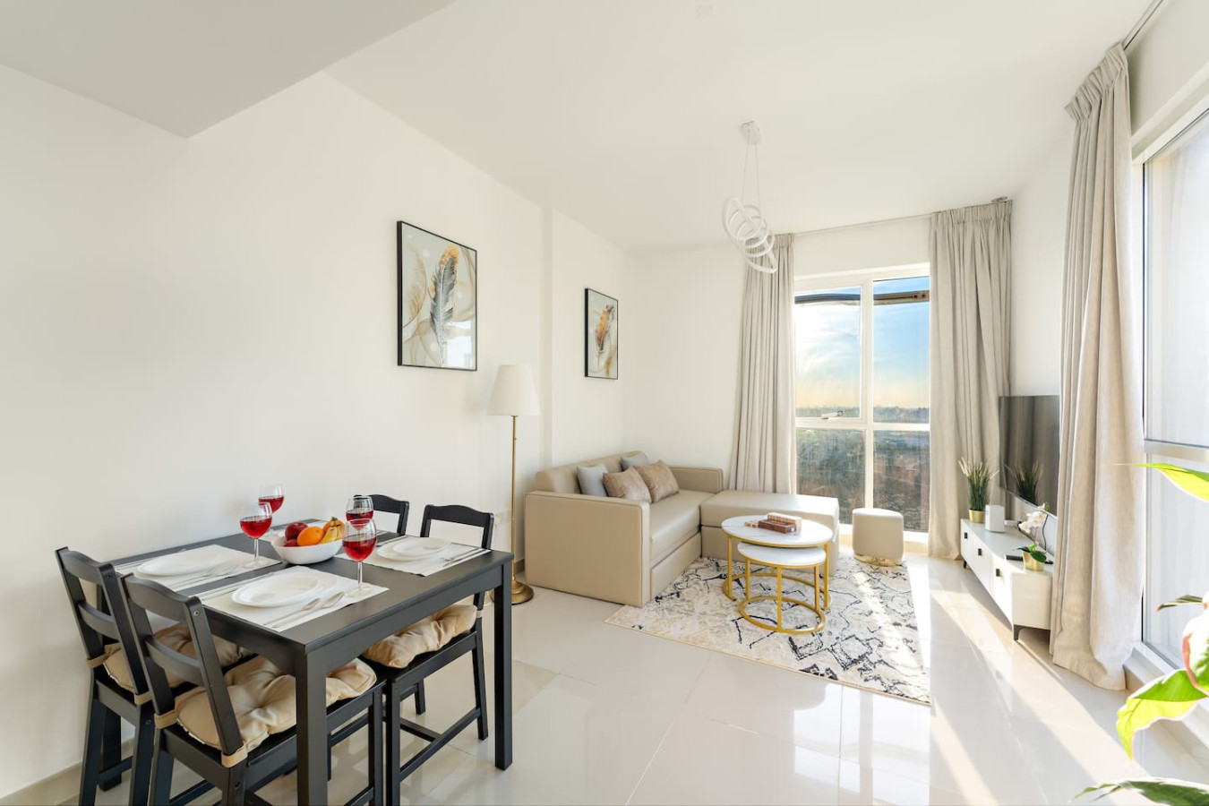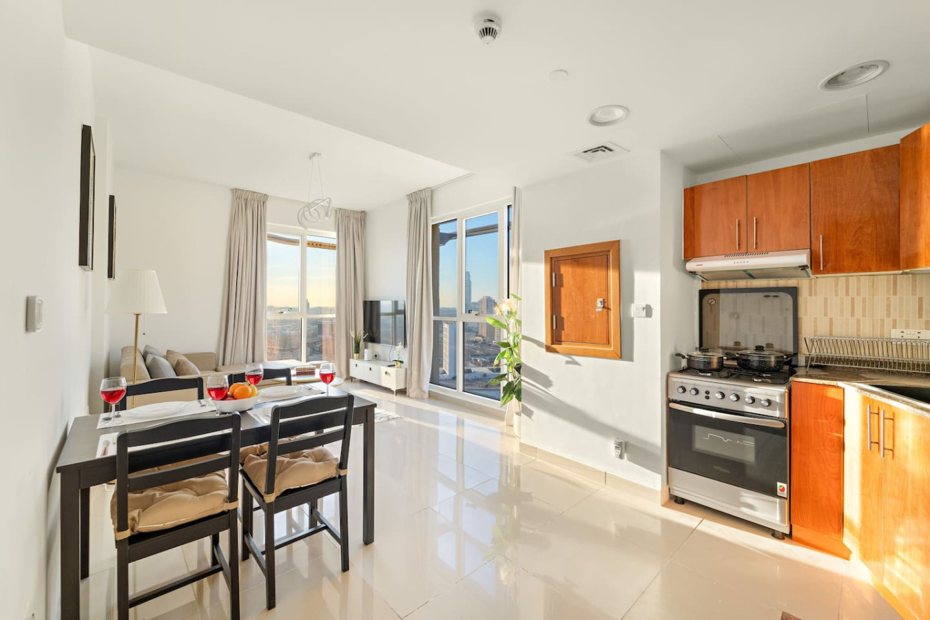 Have a few drinks in the living room while the food is getting ready. Once it’s done, serve it at the inviting dining table and enjoy a tasty meal with your loved ones.