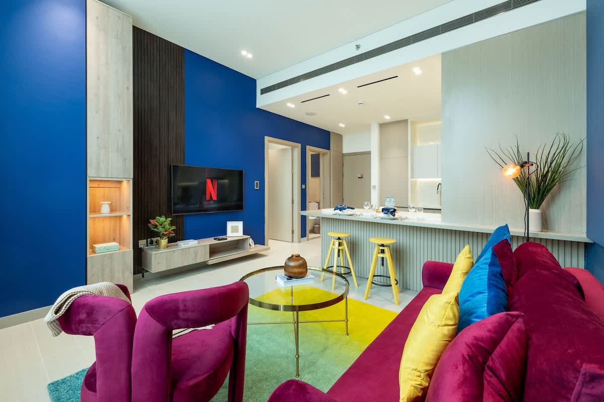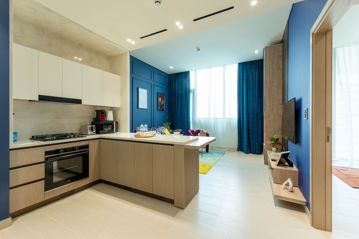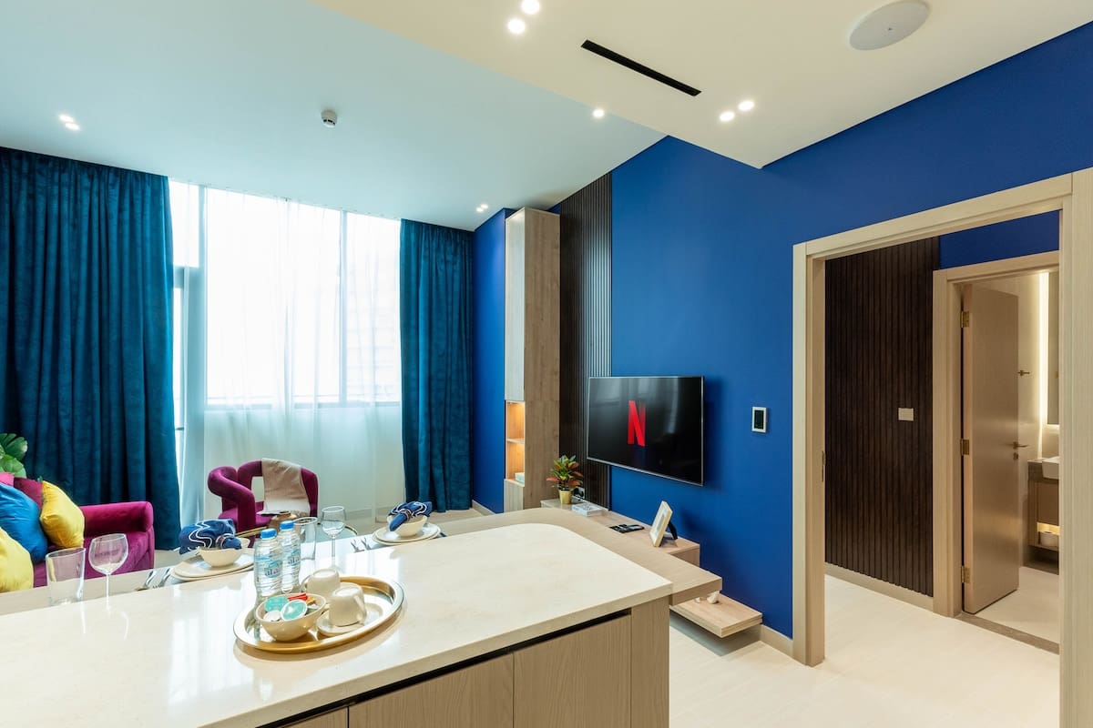 Step into a calm, stylish retreat high above Jumeirah Village Circle. Here, you’ll unwind in a bright 1-bedroom apartment designed for comfort and privacy, with a private balcony where you can enjoy the city atmosphere from above. Start your mornings with coffee and end the day with a swim, sauna, or workout in the building’s premium facilities. Ideal for couples seeking a refined Dubai stay. Reserve your dates now for a relaxed JVC escape. ✨