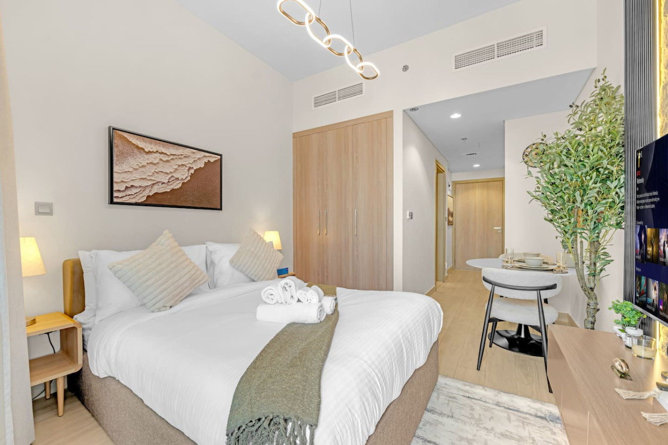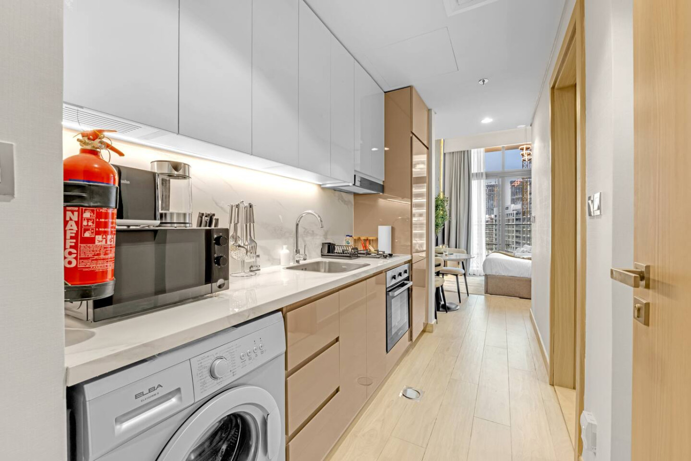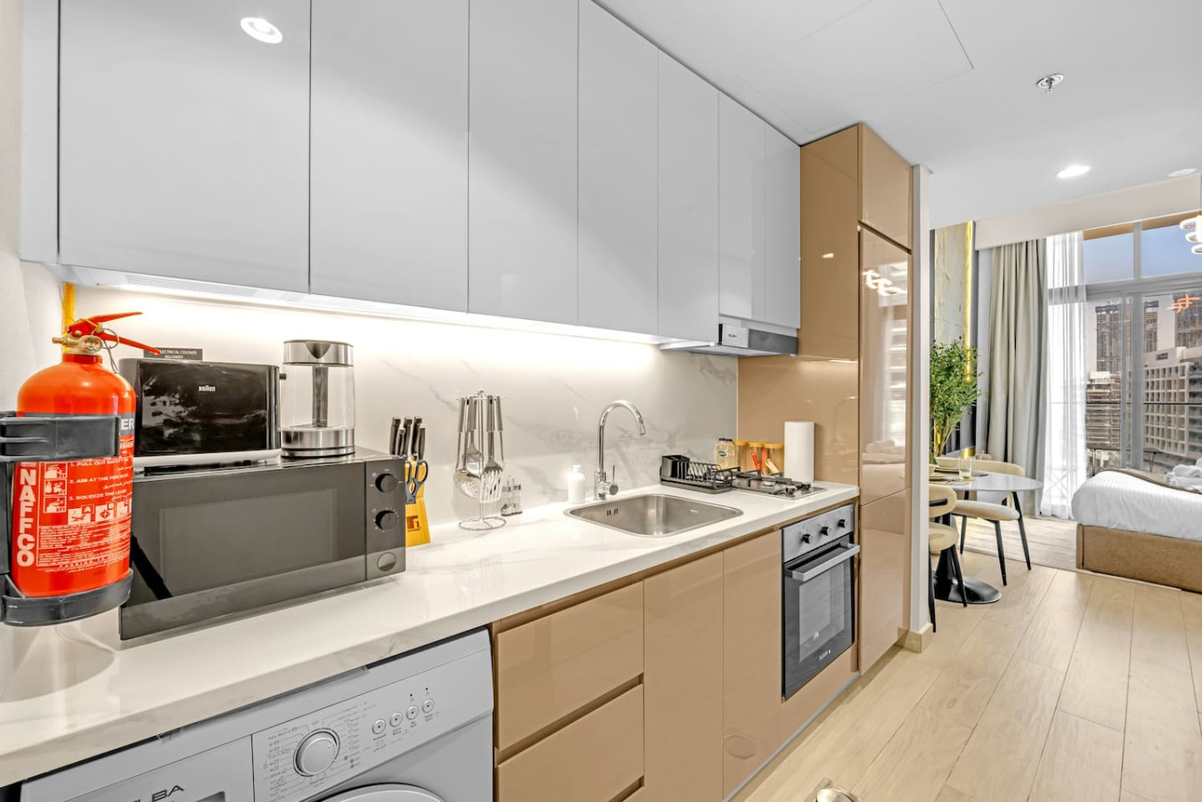 Featuring a cozy living space with a comfortable bed, a fully equipped kitchenette, high-speed Wi-Fi, a smart TV, and a private bathroom, it’s the ideal home base for exploring Dubai.