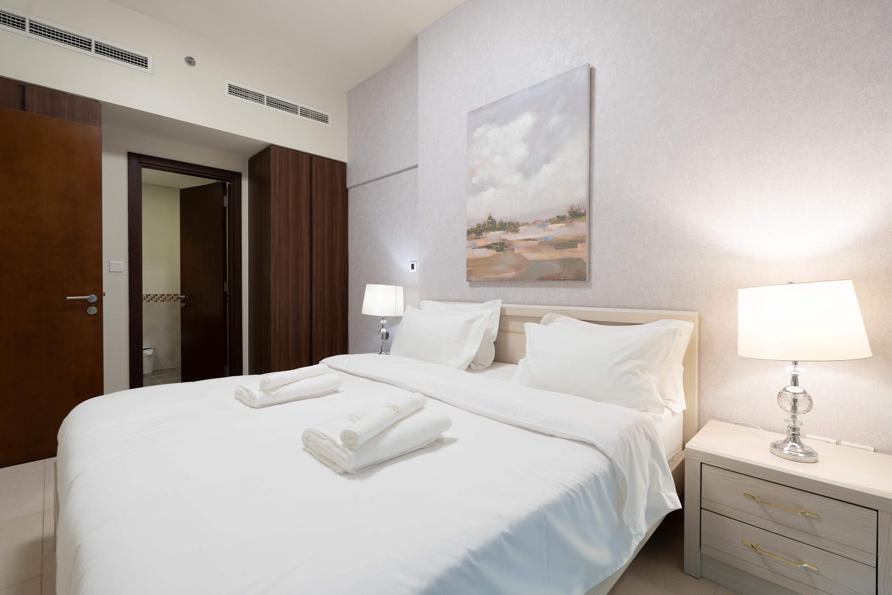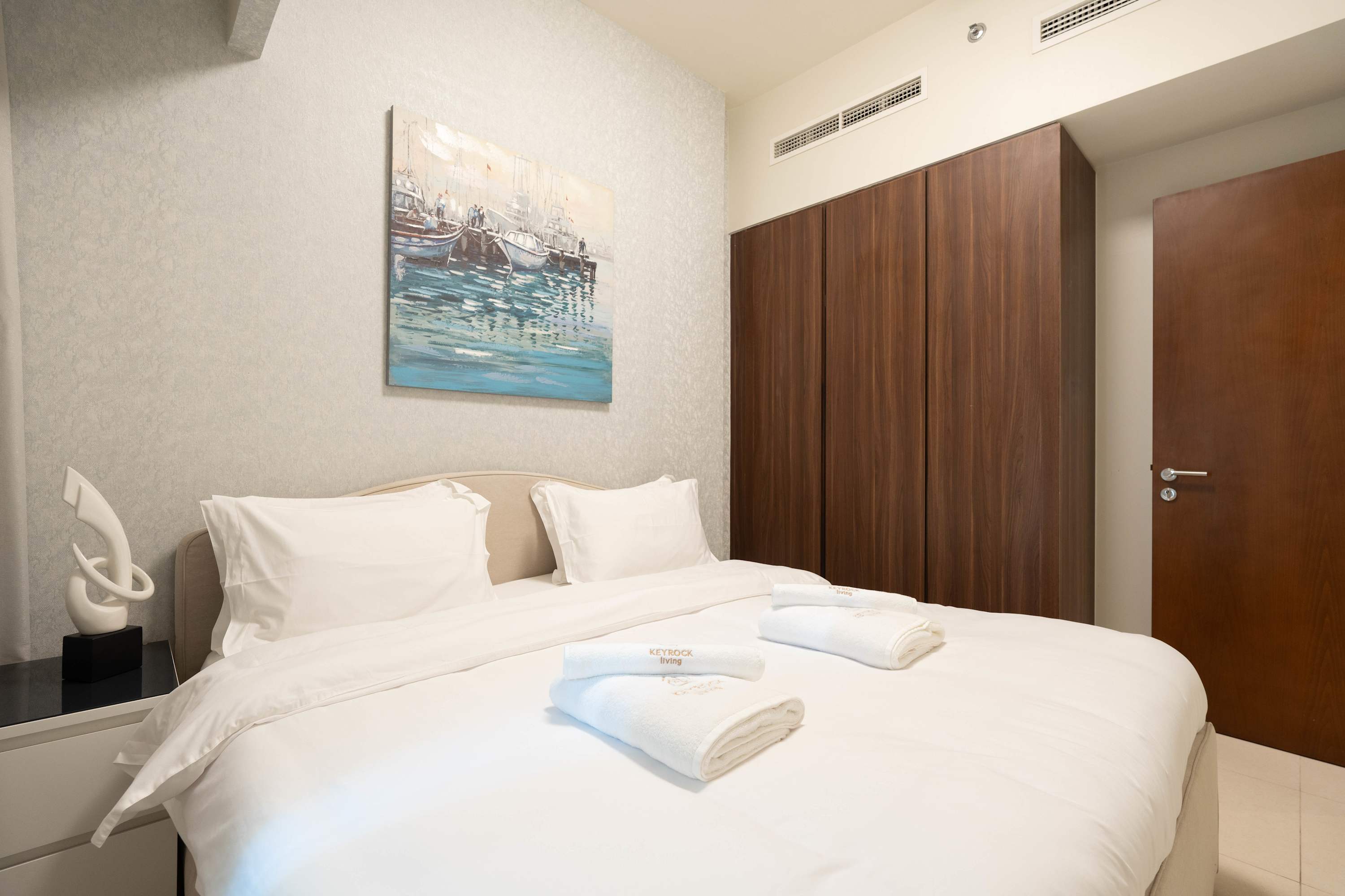 Take in breathtaking front-row views of the Burj Khalifa from this refined 2-bedroom apartment. Sip your morning coffee on the private balcony, relax by the pool, or stay active in the on-site gym. Set moments from Downtown yet peacefully located in Business Bay, this home offers the ideal balance of city access and calm living. Perfect for business trips or leisure stays in Dubai.