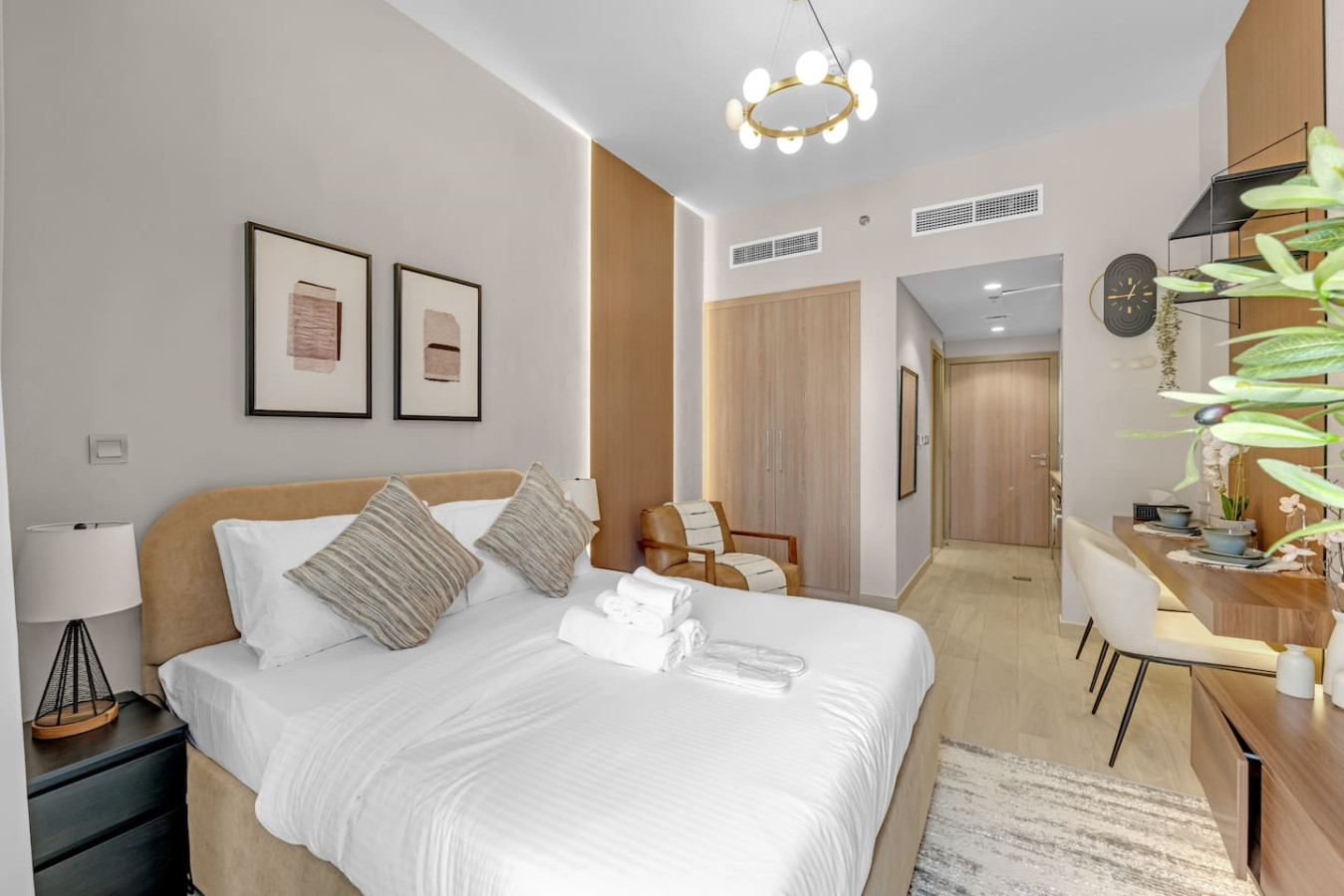 Welcome to your stylish home, a beautifully designed studio perfect for business travelers, couples, or solo explorers wanting comfort and convenience in Dubai.