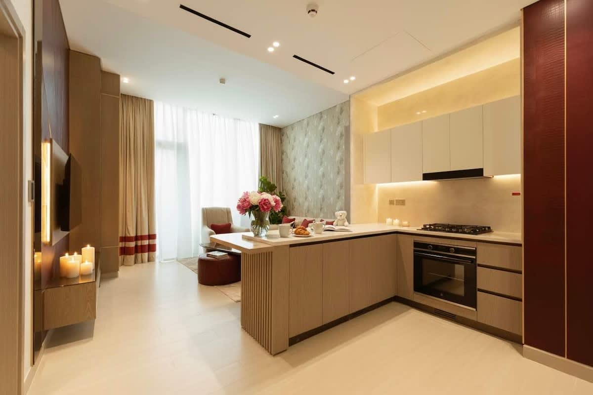 Welcome to a sophisticated sanctuary in the heart of Jumeirah Village Circle. This newly constructed 1-bedroom apartment blends modern luxury with ultimate privacy, featuring a private plunge pool on the balcony overlooking the Dubai skyline. Thoughtfully curated interiors, hotel-grade linens, and access to premium facilities—gym, sauna, and swimming pool—create a seamless stay experience. Ideal for guests who appreciate refined comfort and exclusivity.