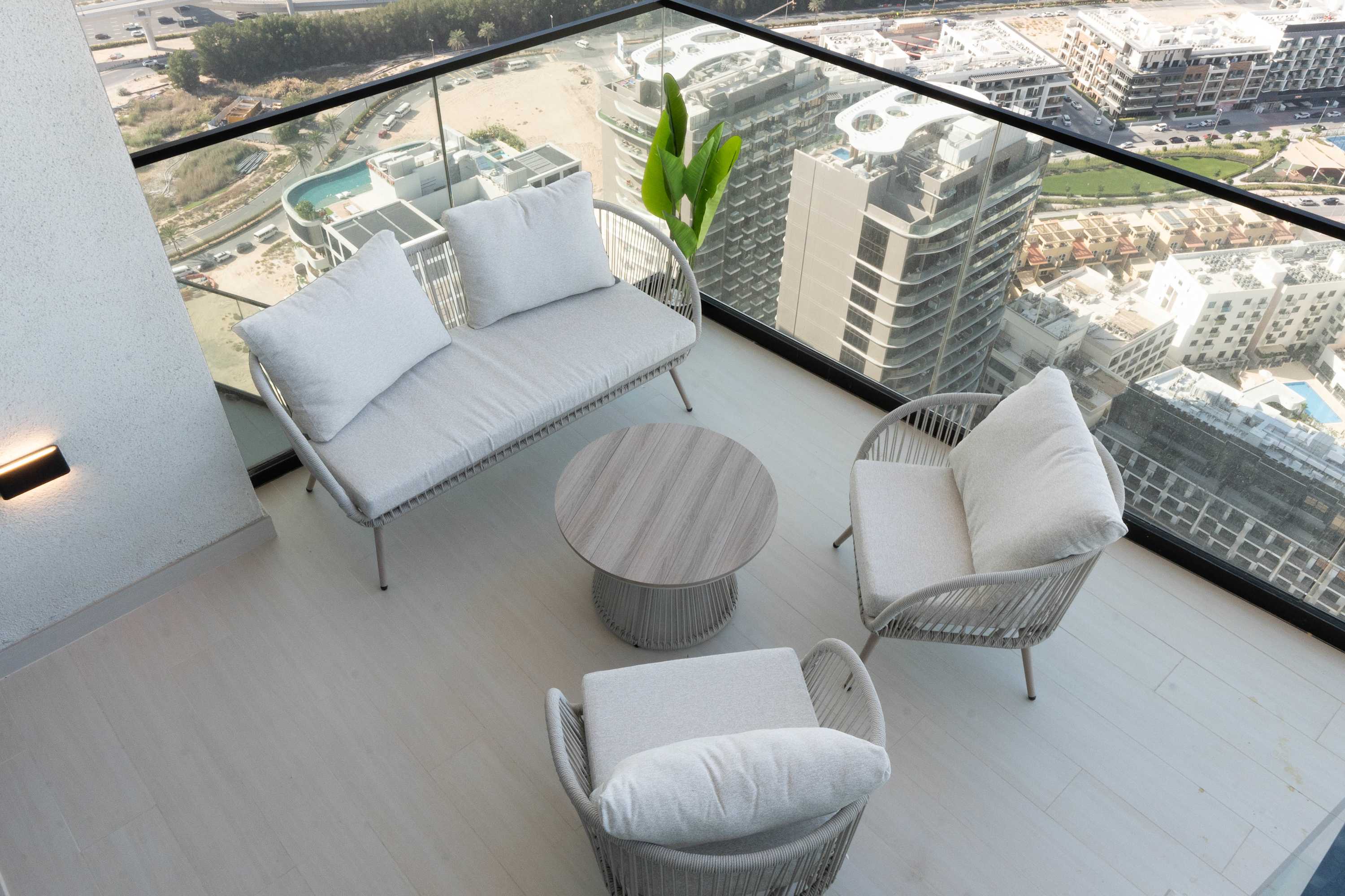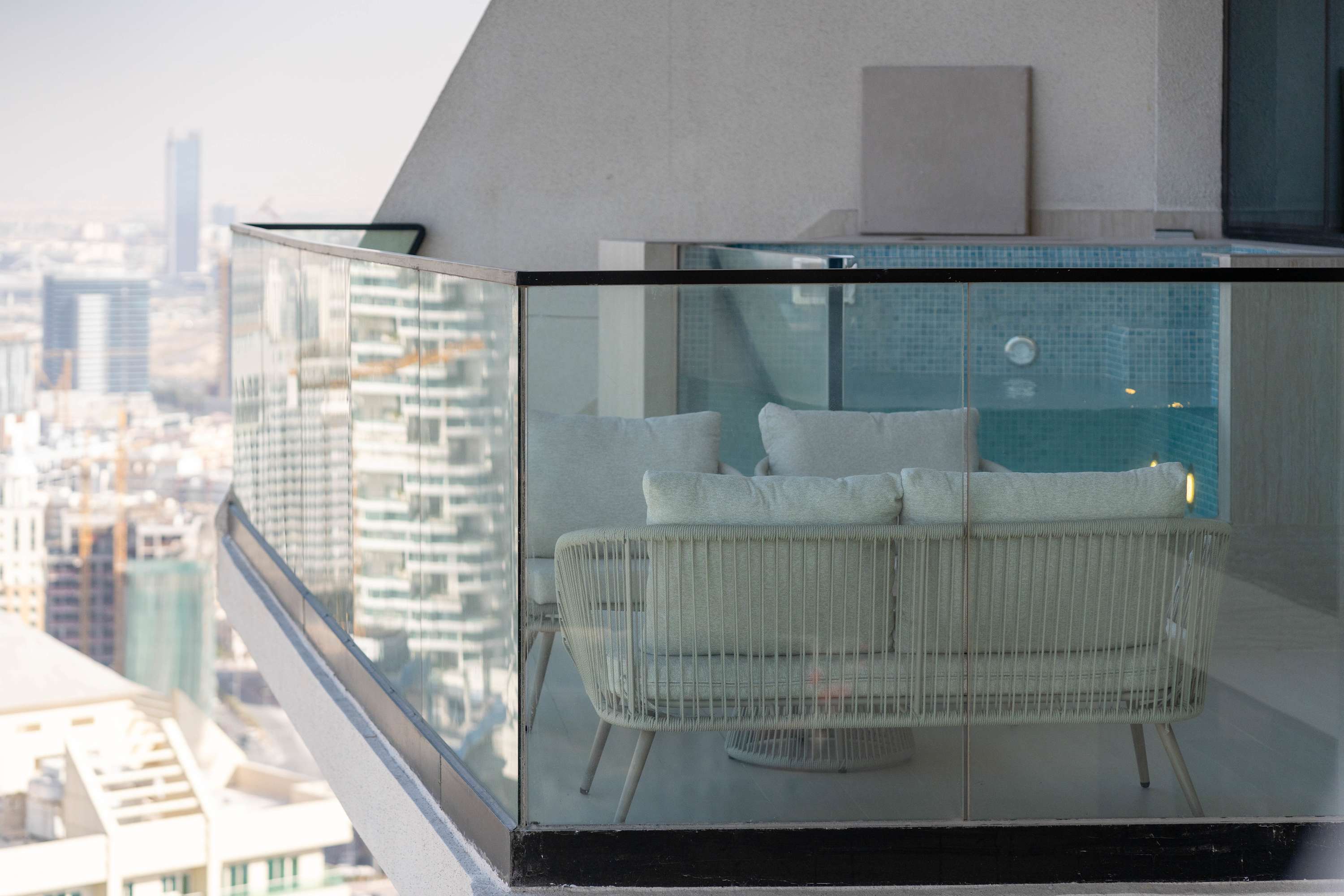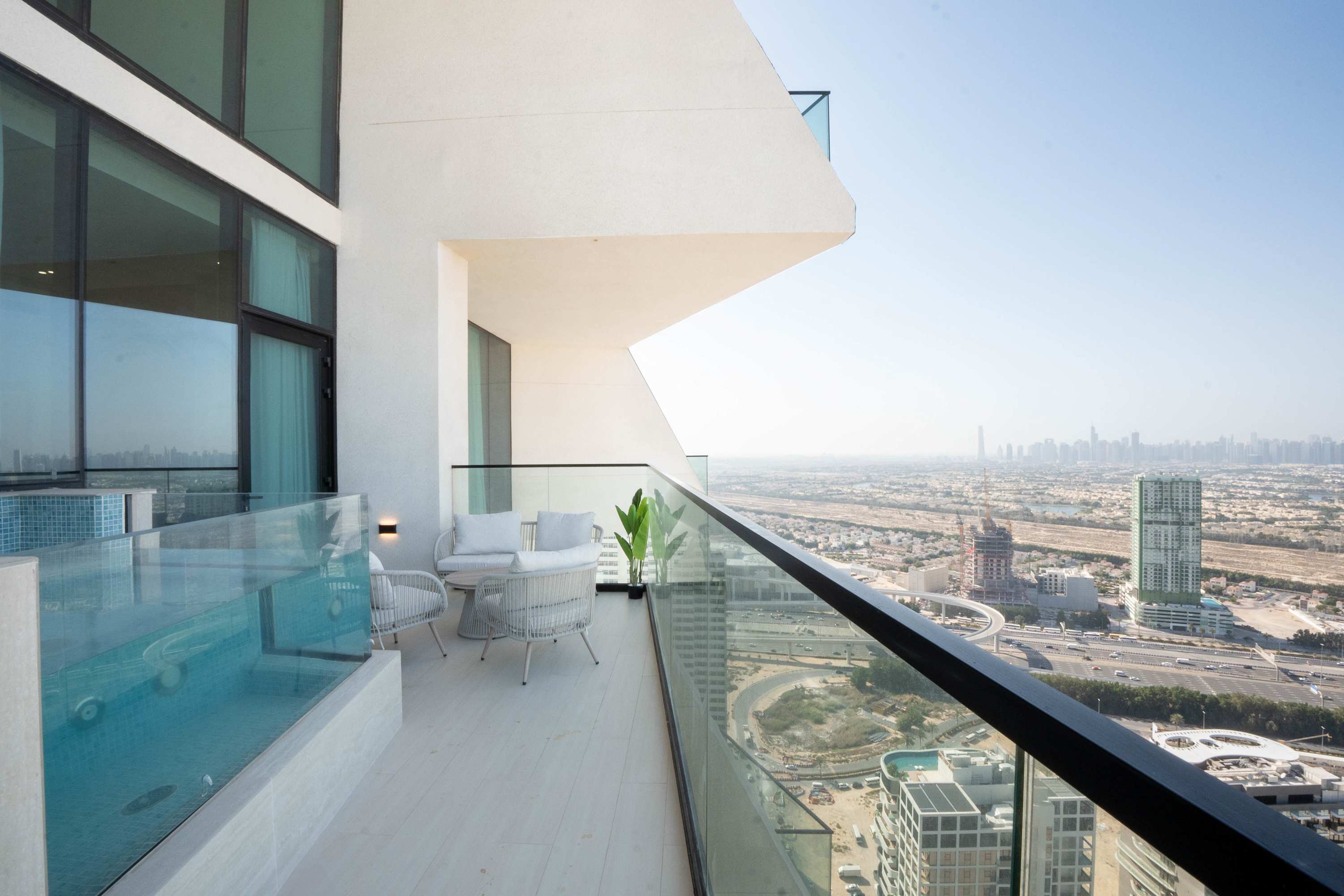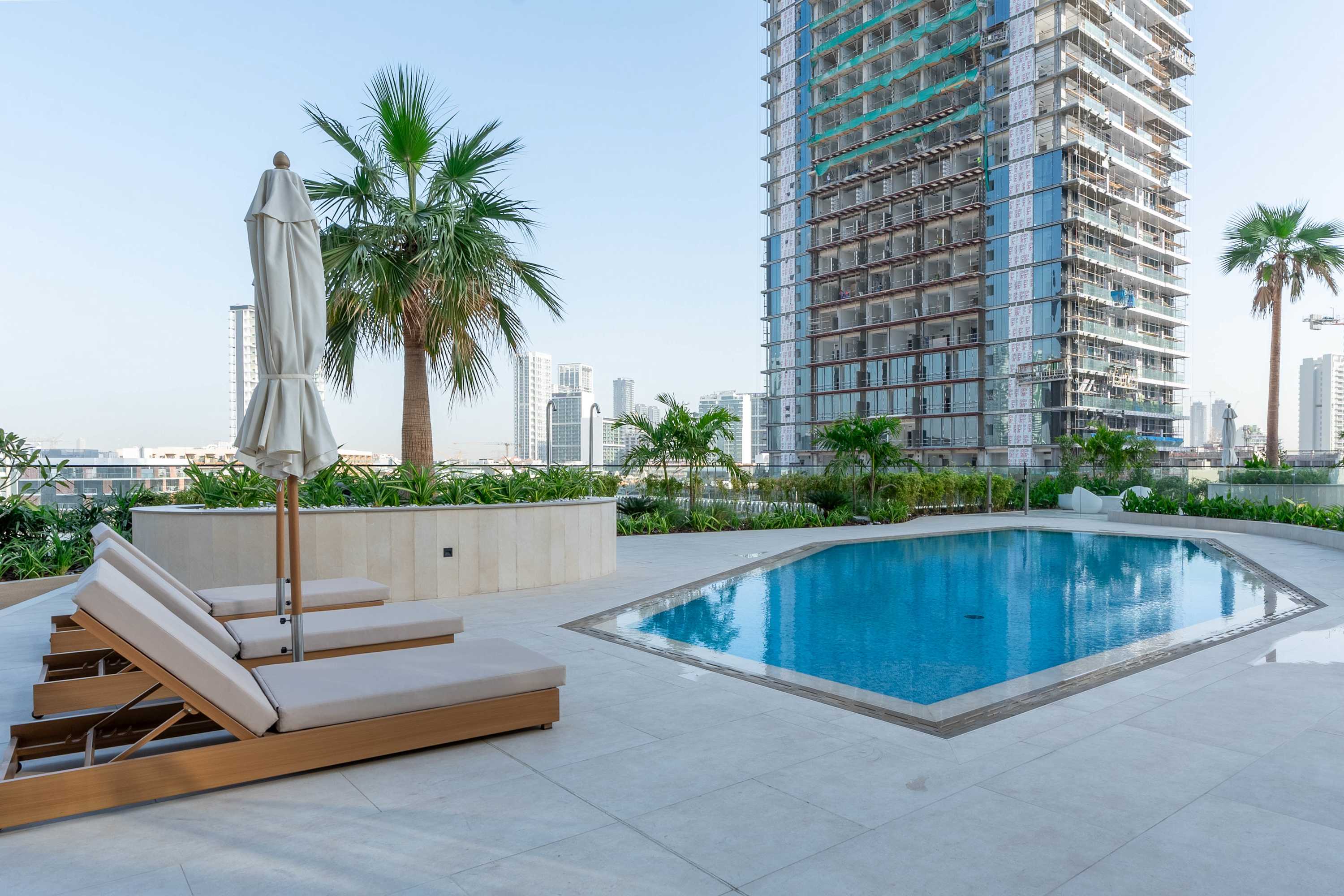 Discover a sophisticated retreat in one of JVC’s newest luxury buildings. This elegant apartment combines refined interiors with a rare private pool on the balcony, offering a peaceful escape above the city. Guests enjoy hotel-level comfort, premium finishes, and access to gym, sauna, and pool facilities. Perfect for travelers seeking exclusivity and style.