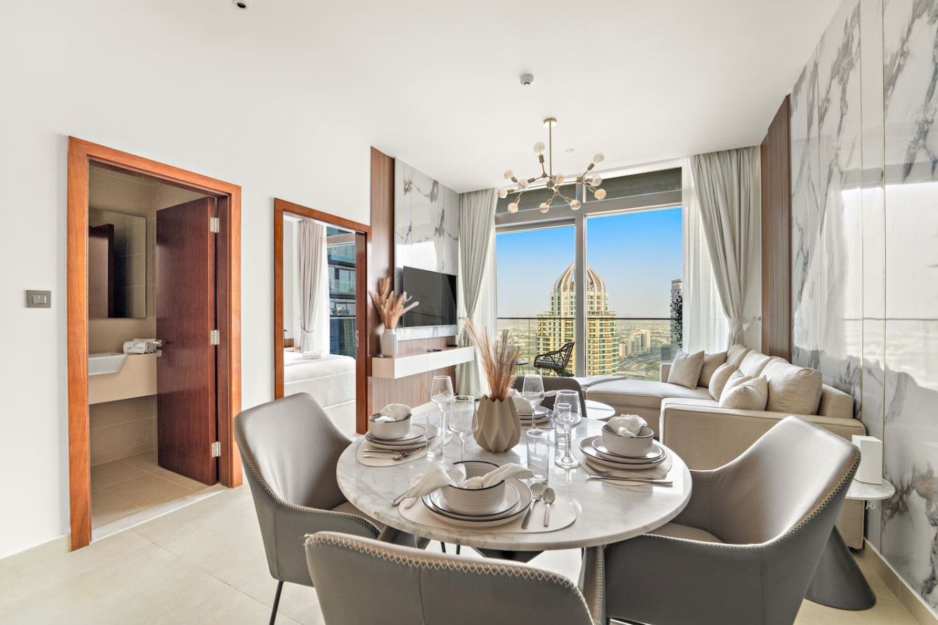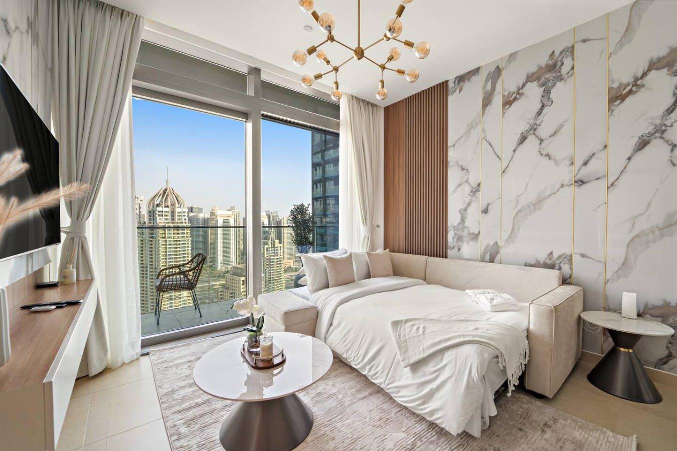 🌅 Marina views from the balcony, just steps to 🚋 Tram, 🚇 Metro, and a short stroll to 🏖 JBR Beach! This sleek 1BR blends modern sophistication with cozy elegance, featuring high-end finishes and contemporary furnishings 🛋. Perfect for families or couples seeking comfort, privacy, and city connectivity. Enjoy a peaceful stay while being minutes from Dubai’s vibrant attractions ✨🏙.