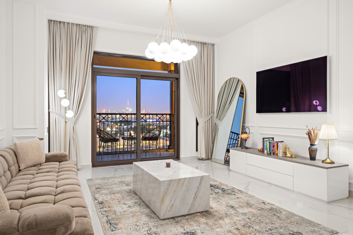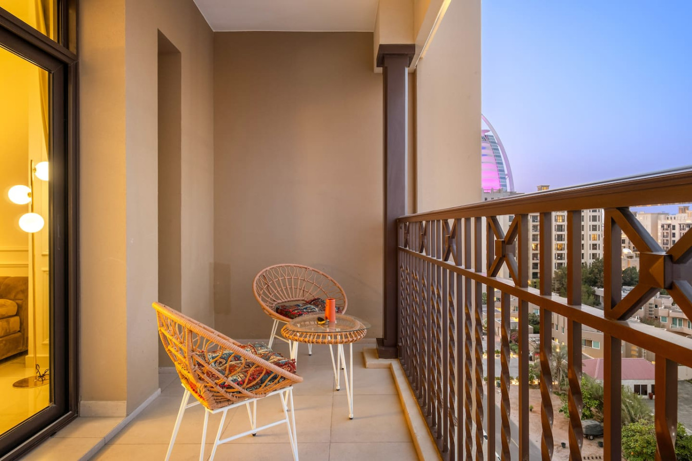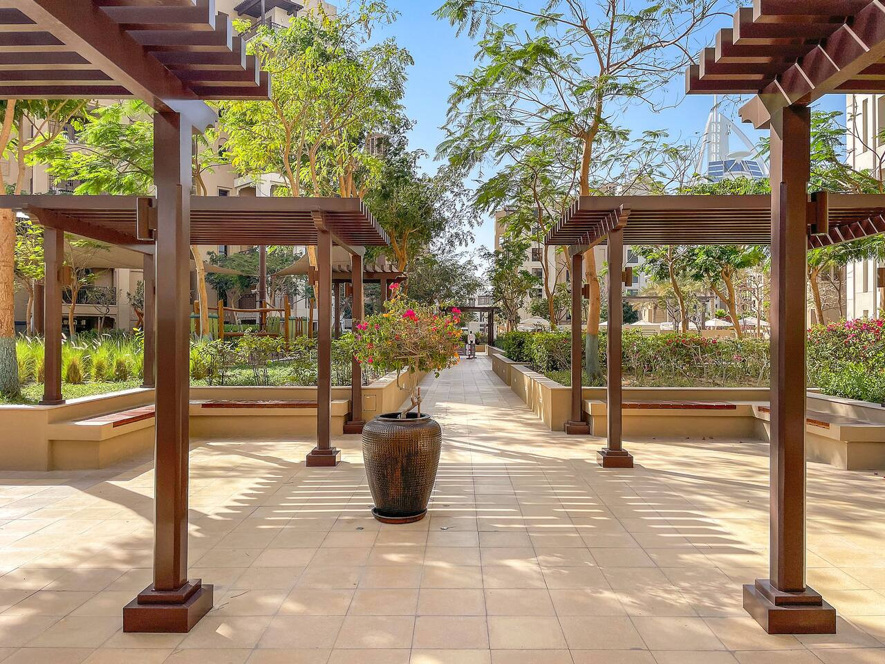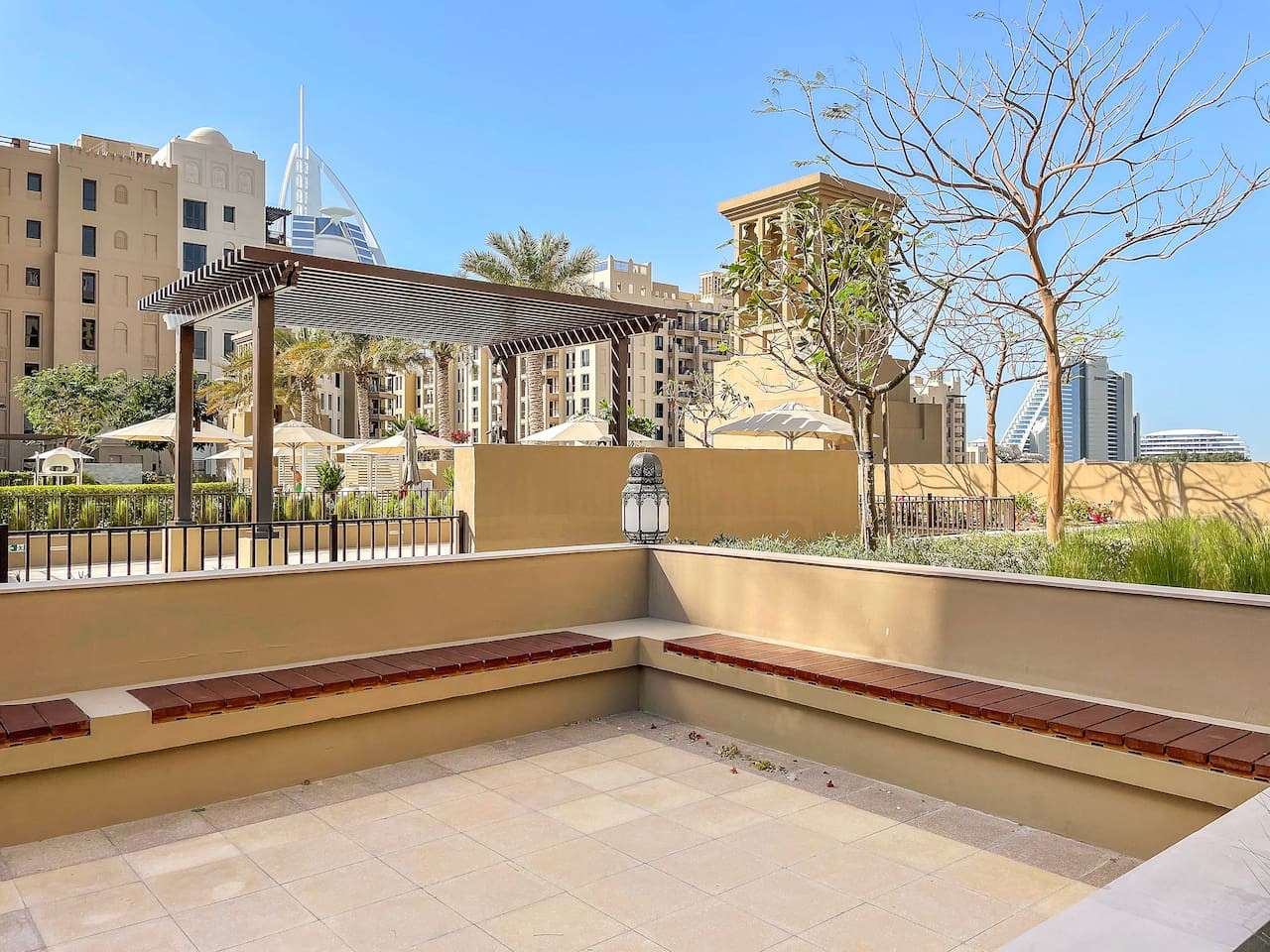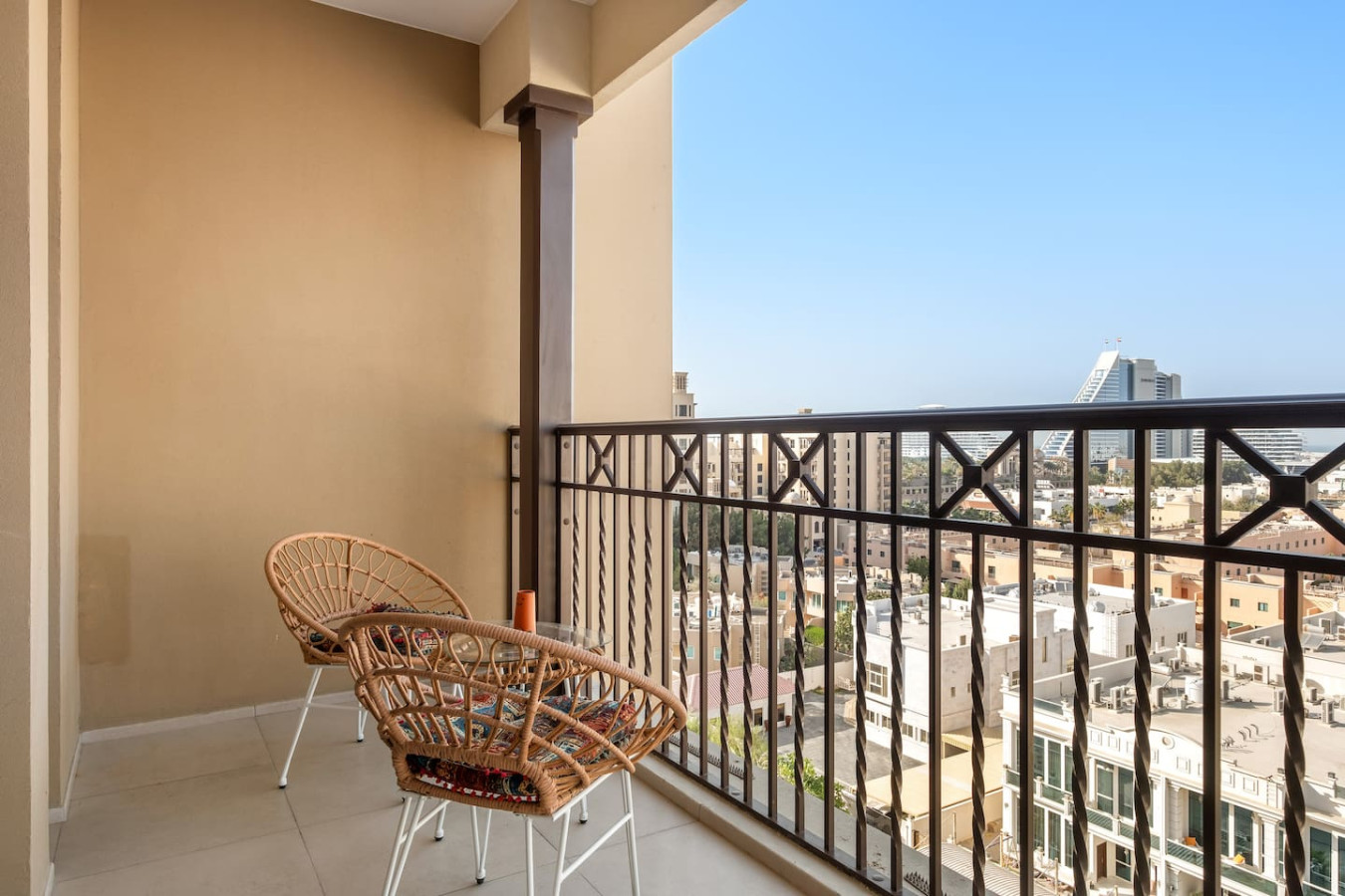 Stylish & luxurious 1BR 🌟 with stunning Burj Al Arab & Burj Khalifa views from the balcony 🌇. Relax in a modern space with large windows ☀️, high-end finishes, and lush green surroundings 🌿. Perfect blend of cozy homey vibes & vibrant city life 🌆—ideal for unwinding after exploring. Enjoy scenic walkways, premium comfort, and urban charm ✨. Your perfect Dubai escape awaits—book now! 🏙️