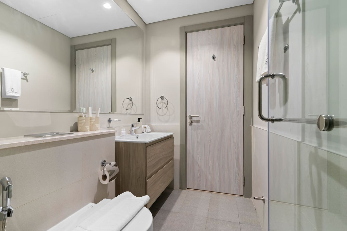 The bathroom is stocked with fresh towels and essential toiletries, so you don’t have to worry about bringing your own.
