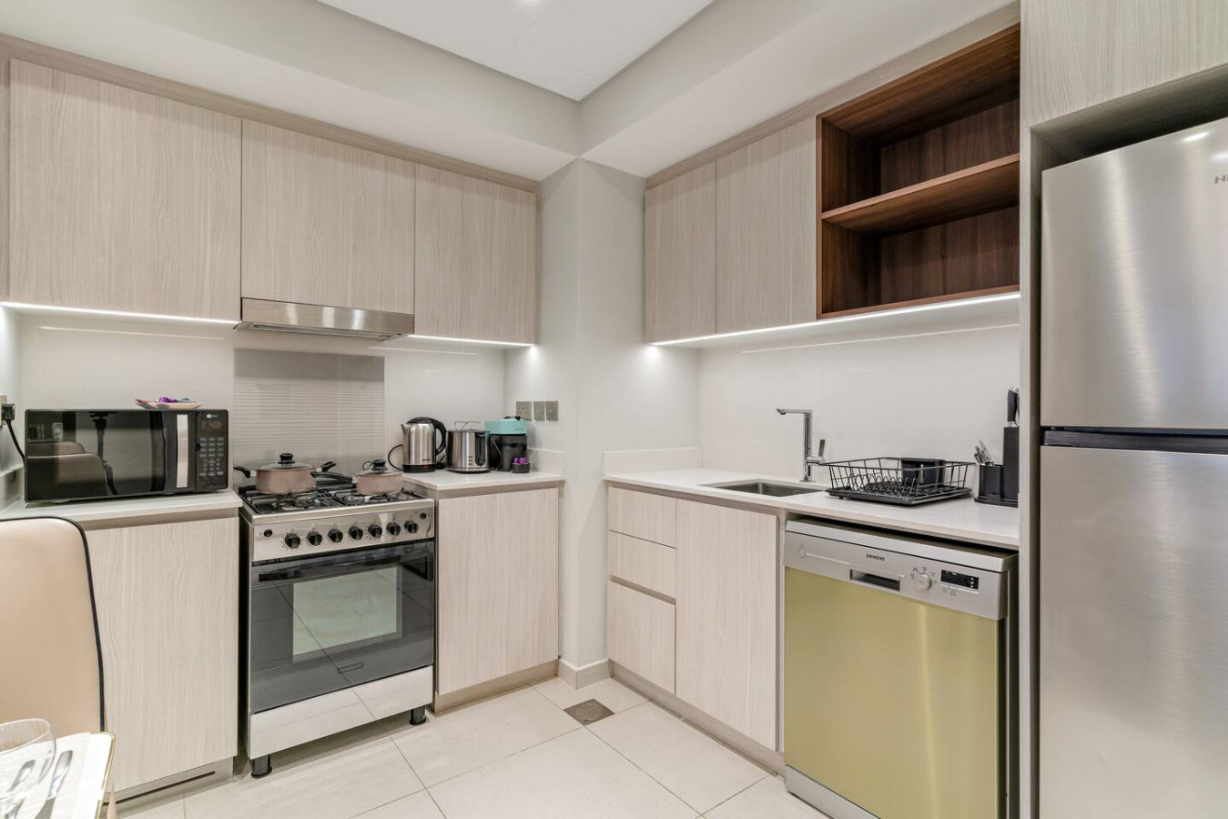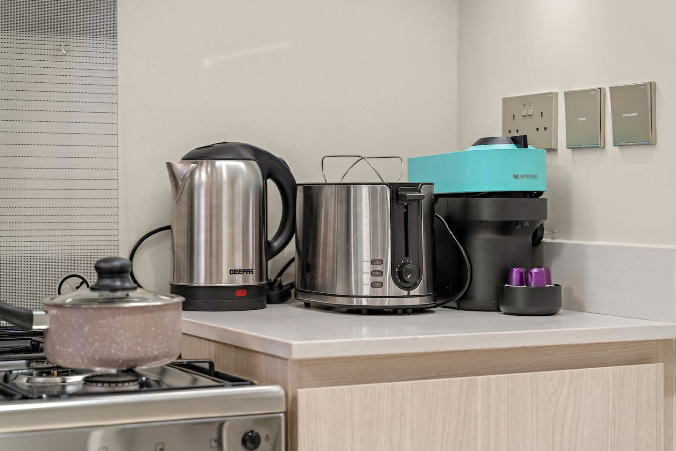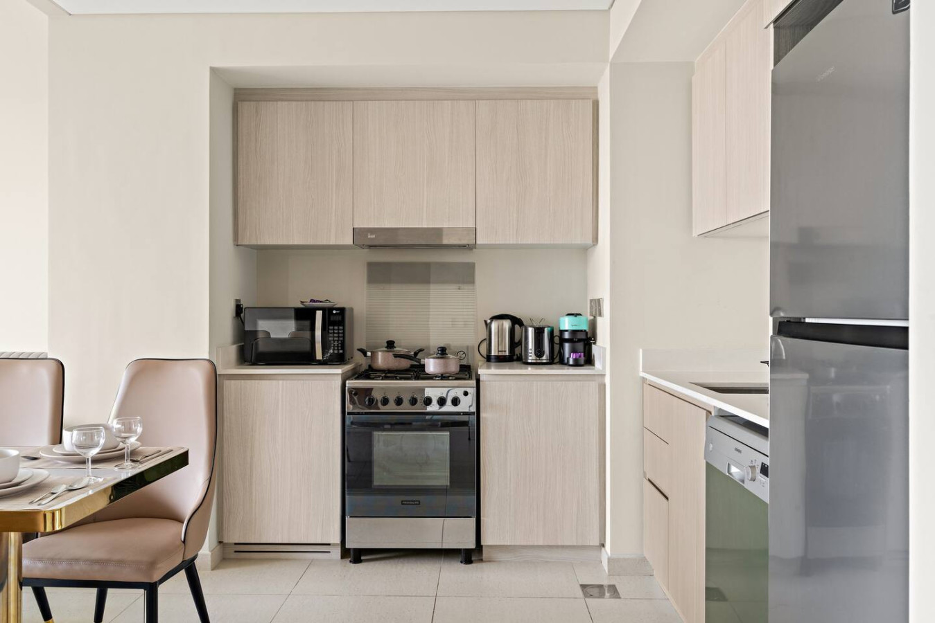 It is fully equipped with stainless-steel cooking appliances that make it suitable for preparing any meal, whether a simple breakfast, quick snack or a three-course gourmet dinner.