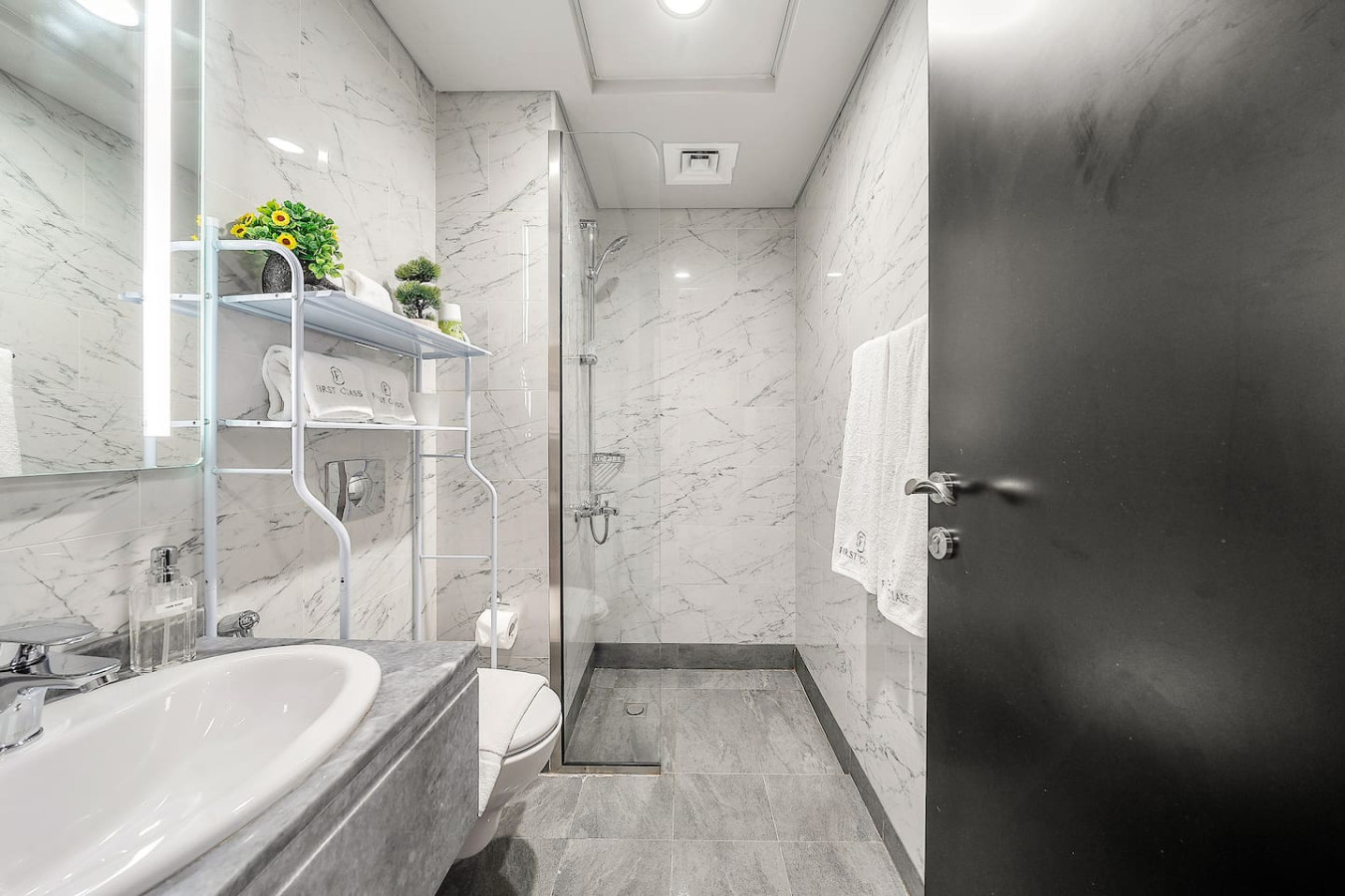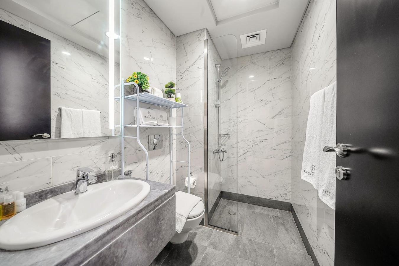 The bathroom is stocked with fresh towels and essential toiletries, so you don’t have to worry about bringing your own.