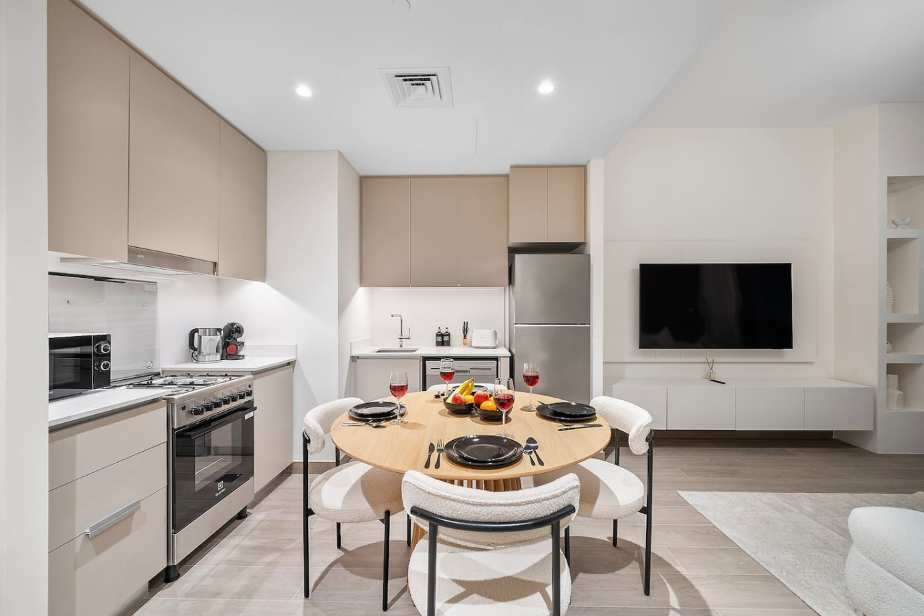 It is fully equipped with stainless-steel cooking appliances that make it suitable for preparing any meal, whether a simple breakfast, quick snack or a three-course gourmet dinner. Spacious quartz countertops and a central kitchen island provide plenty of room to work your MasterChef magic.