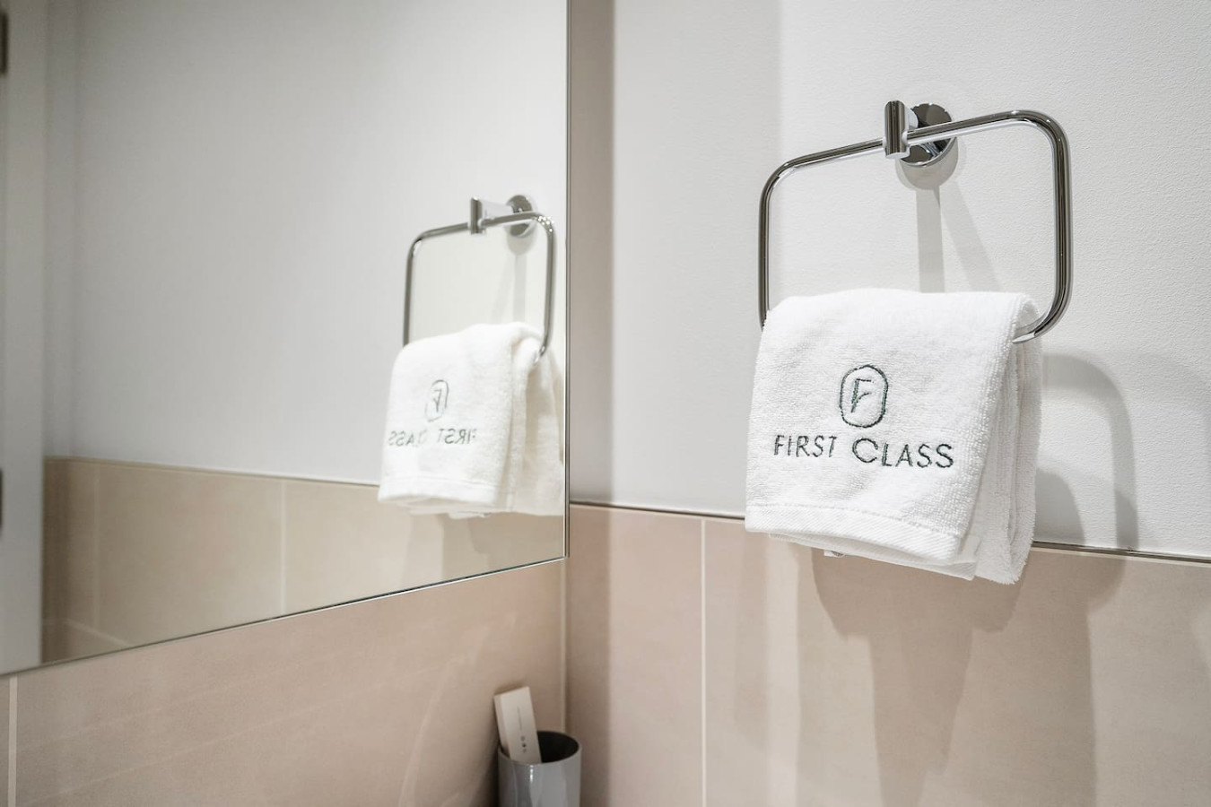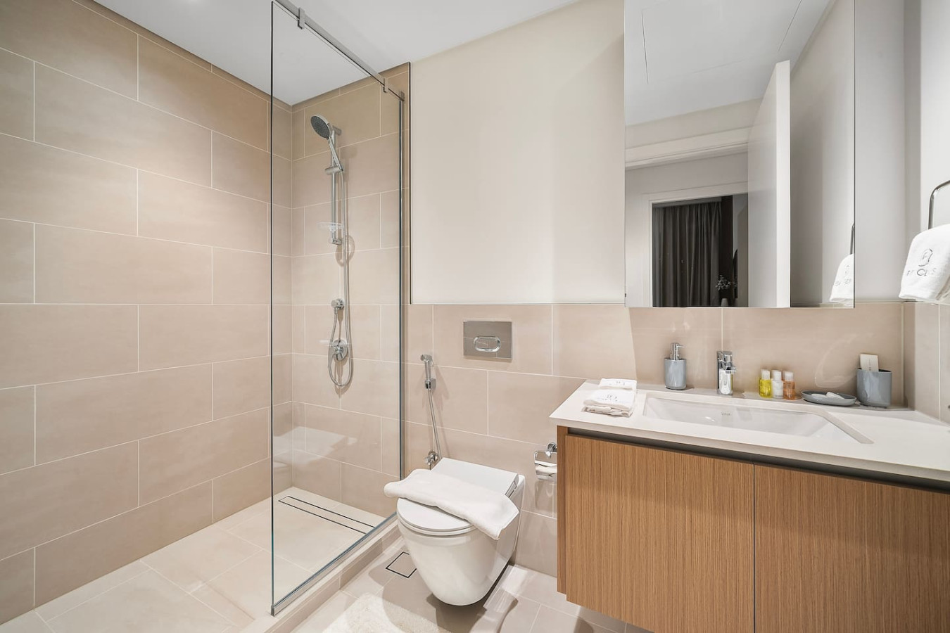 The bathroom is stocked with fresh towels and essential toiletries, so you don’t have to worry about bringing your own.