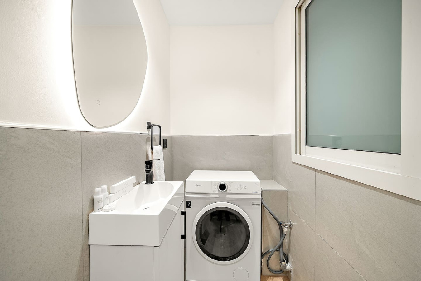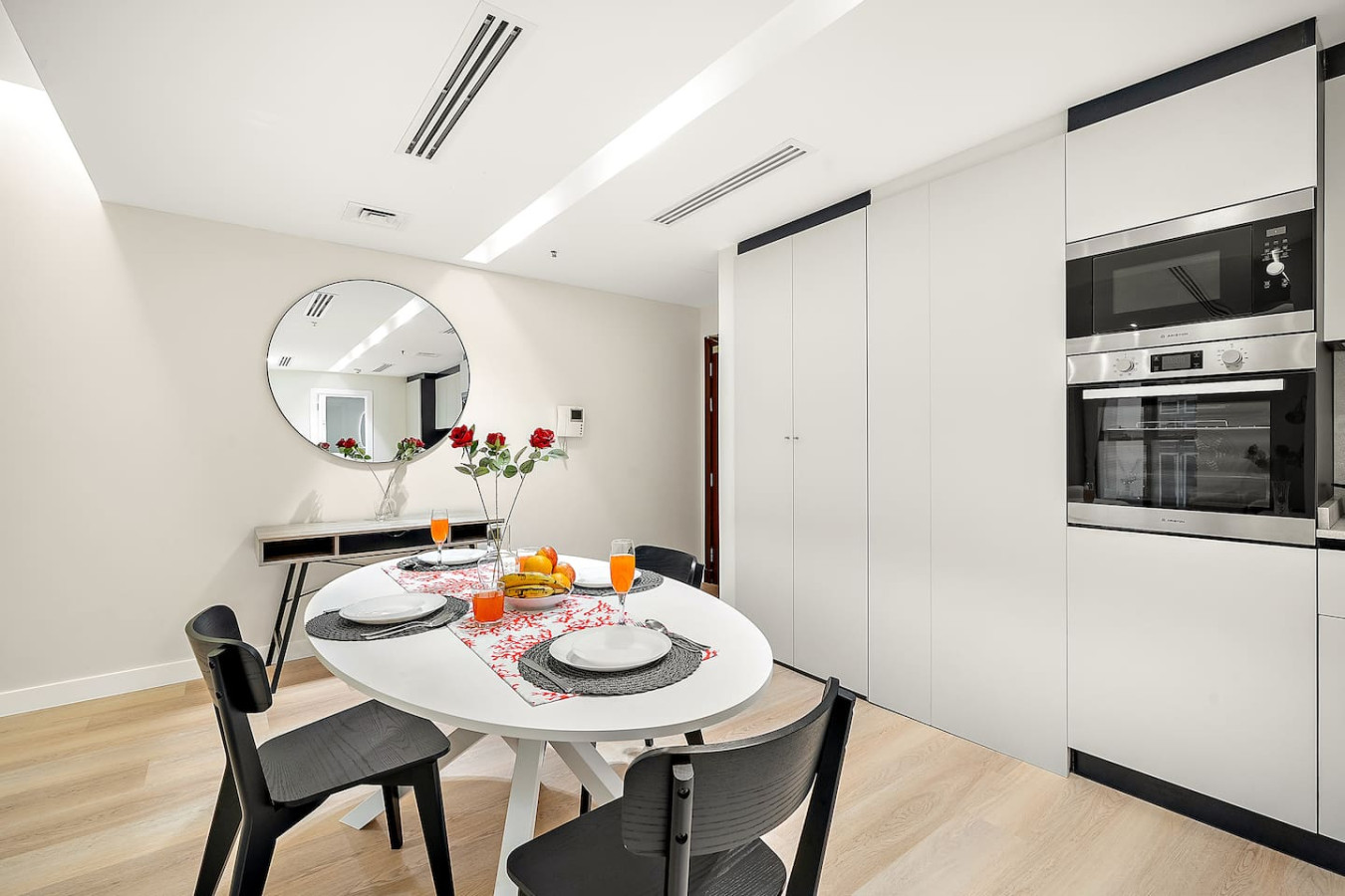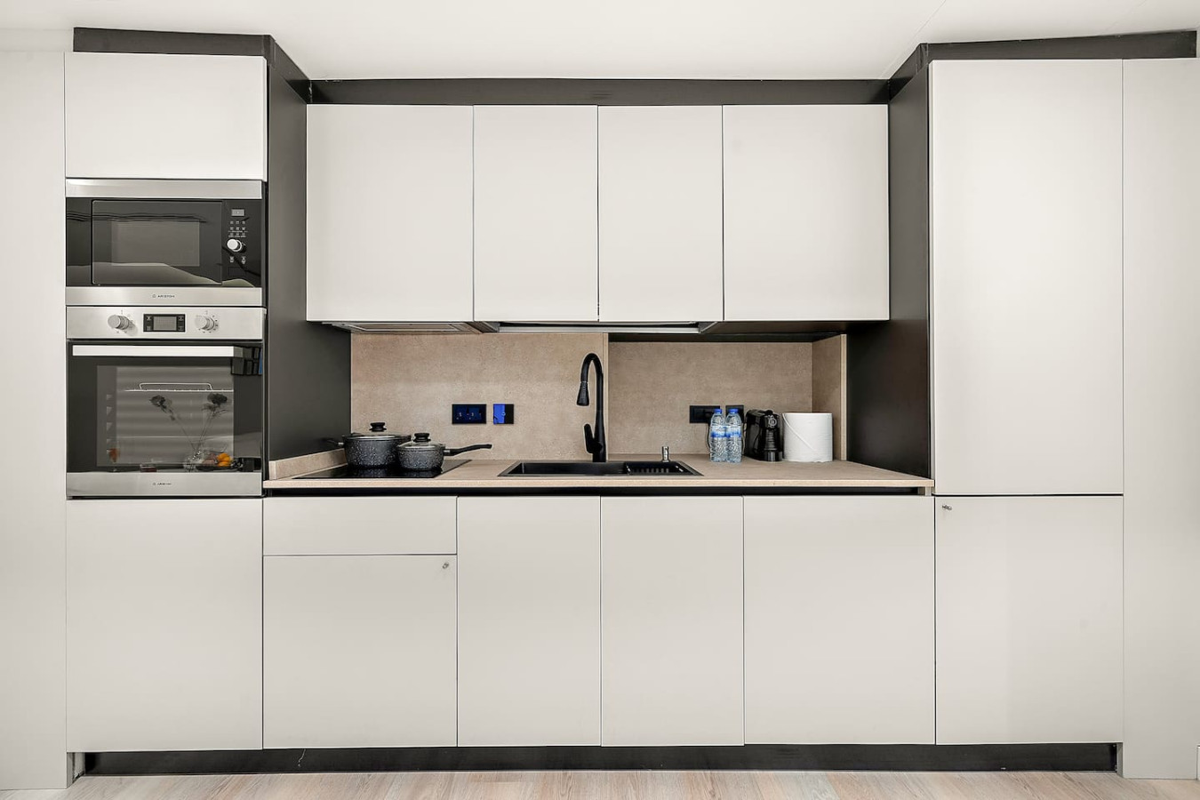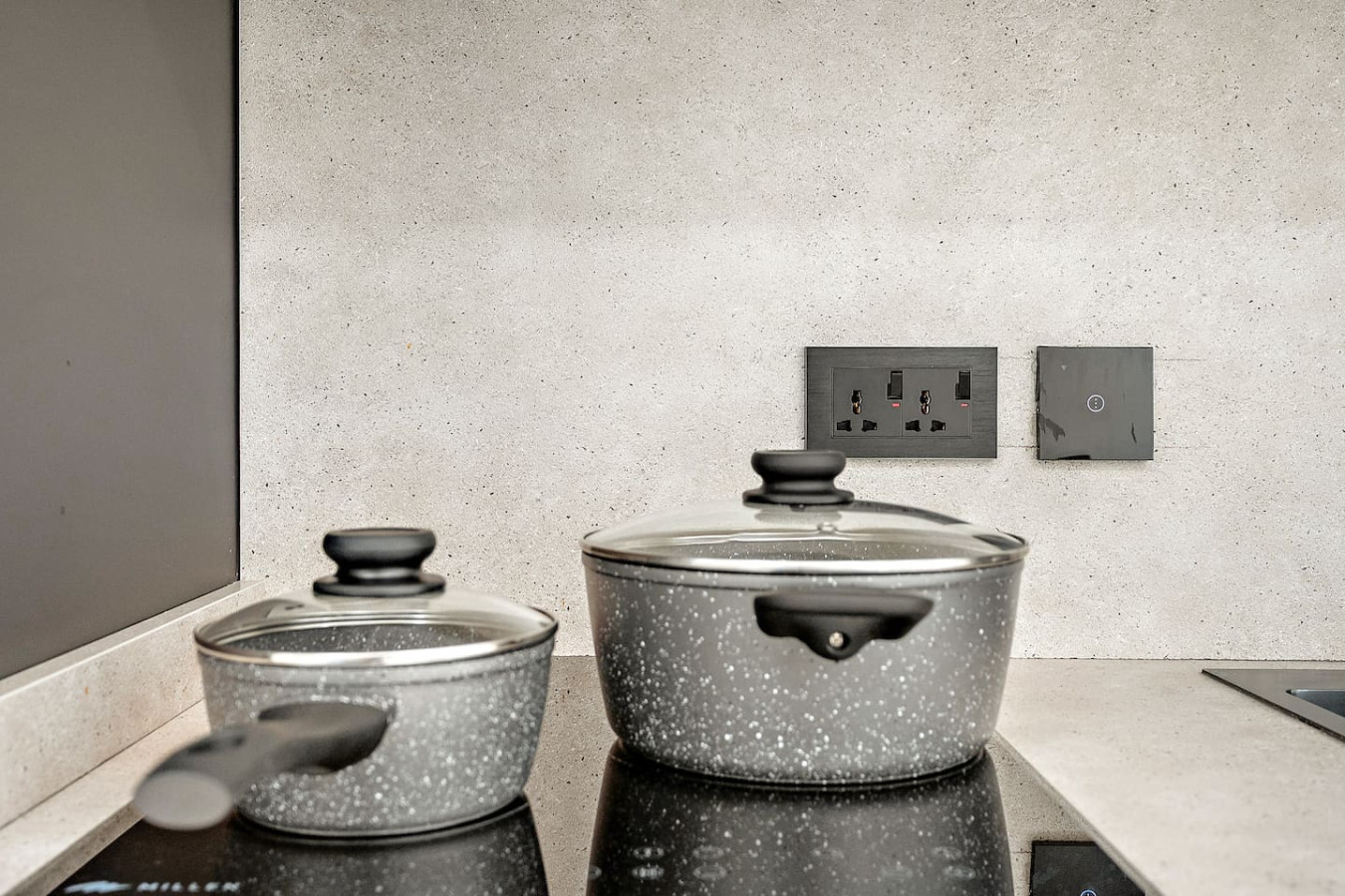 It is fully equipped with stainless-steel cooking appliances that make it suitable for preparing any meal, whether a simple breakfast, quick snack or a three-course gourmet dinner. Spacious quartz countertops and a central kitchen island provide plenty of room to work your MasterChef magic.