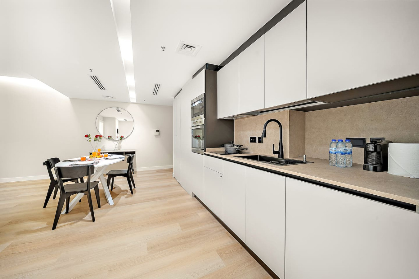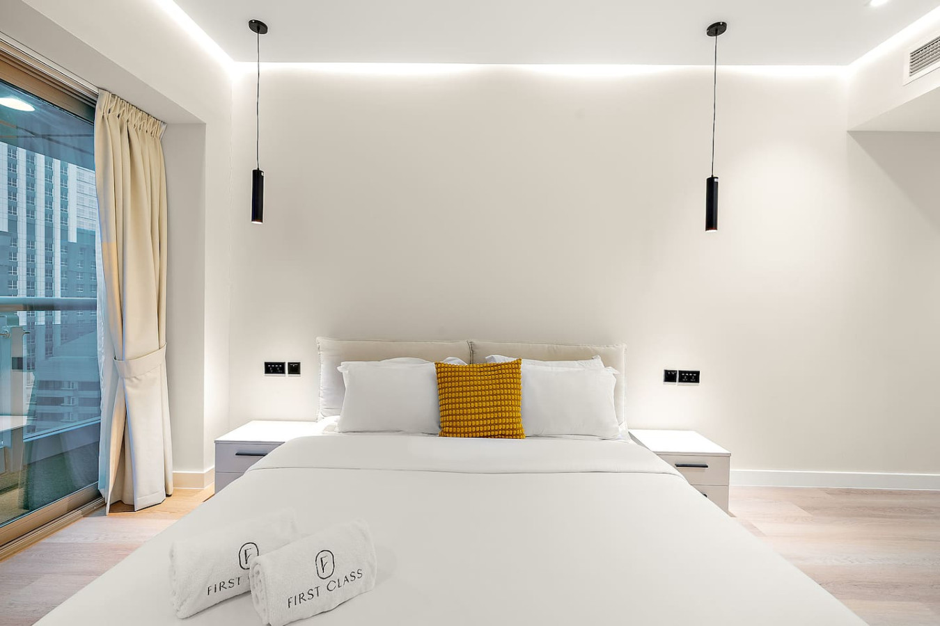 From the balcony of our luxurious apartment, you’ll enjoy breathtaking views of both the iconic Dubai Marina and the stunning Palm Jumeirah. Watch the Marina’s vibrant atmosphere with its luxury yachts, and soak in the beauty of the Palm’s