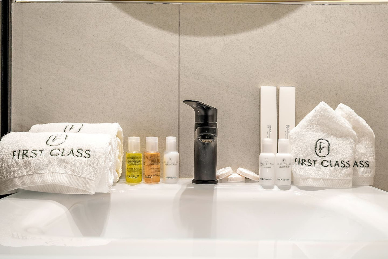 The bathroom is stocked with fresh towels and essential toiletries, so you don’t have to worry about bringing your own.