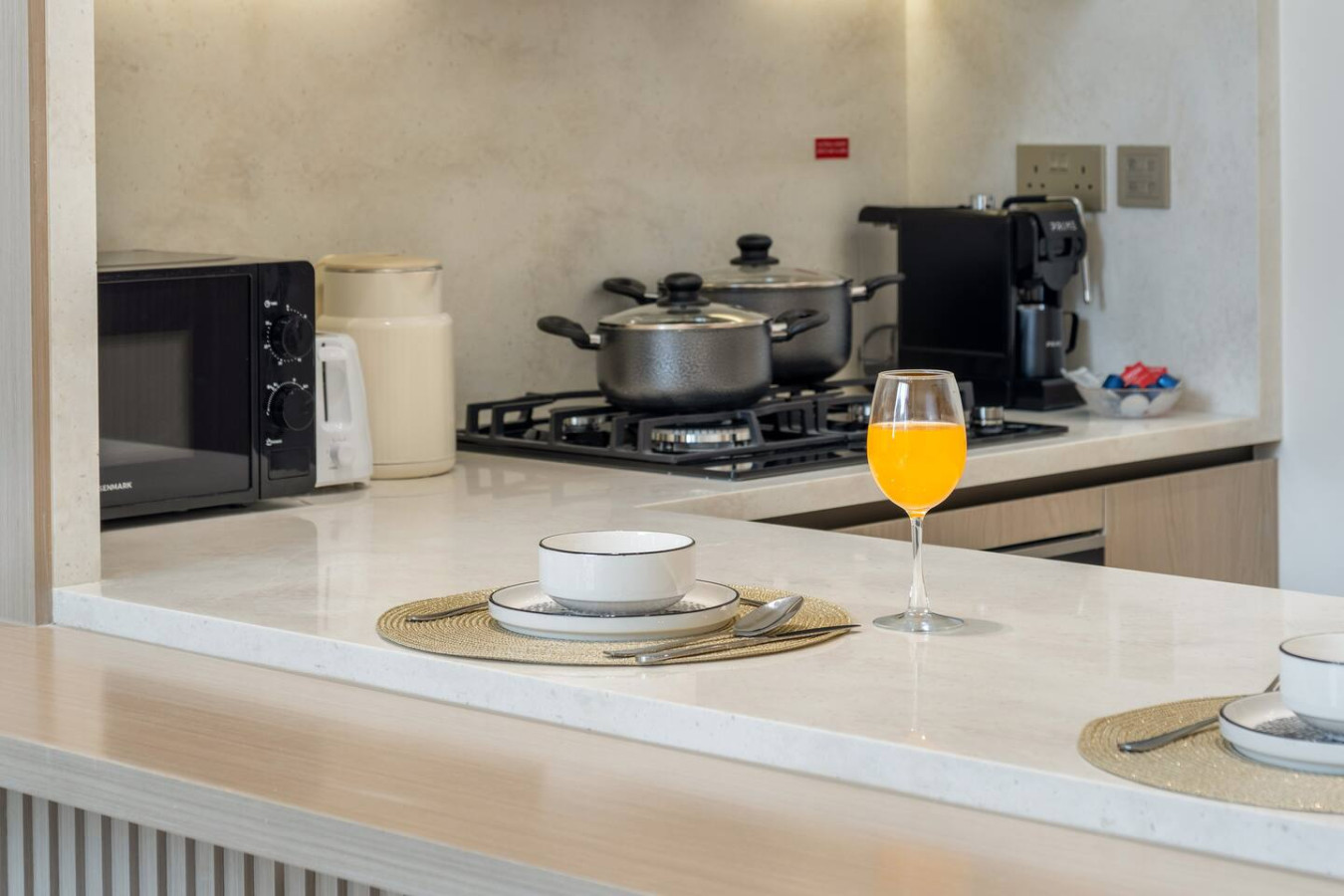 It is fully equipped with stainless-steel cooking appliances that make it suitable for preparing any meal, whether a simple breakfast, quick snack or a three-course gourmet dinner.