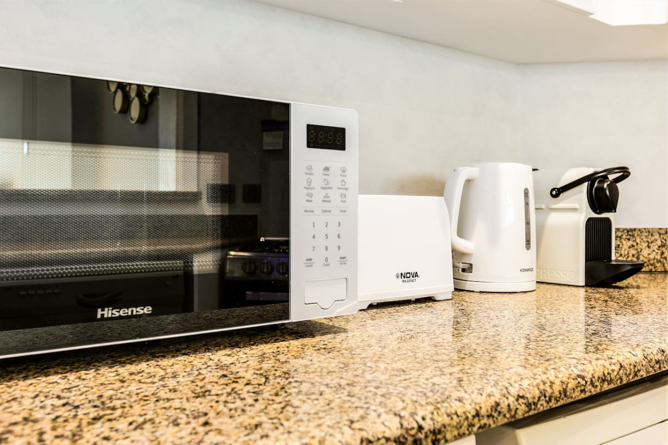 It is fully equipped with stainless-steel cooking appliances that make it suitable for preparing any meal, whether a simple breakfast, quick snack or a three-course gourmet dinner.
