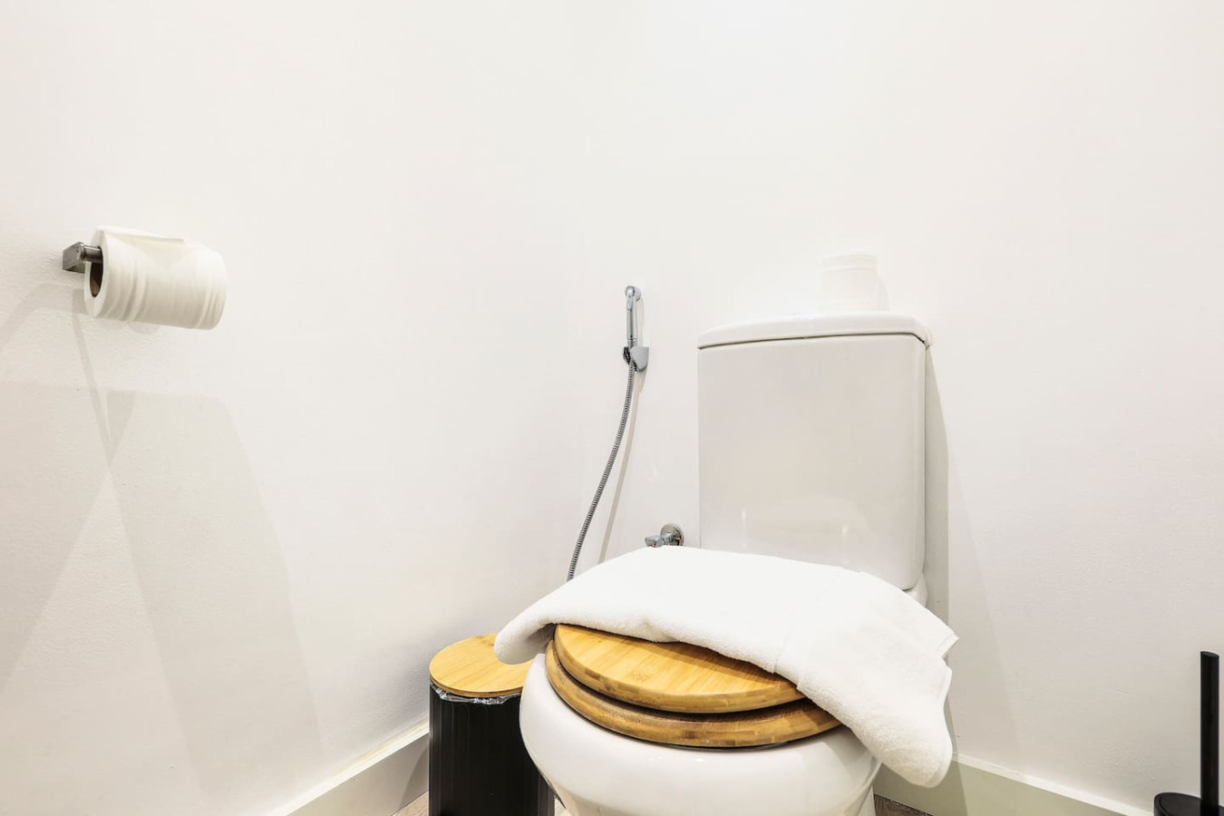 The bathroom is stocked with fresh towels and essential toiletries, so you don’t have to worry about bringing your own.