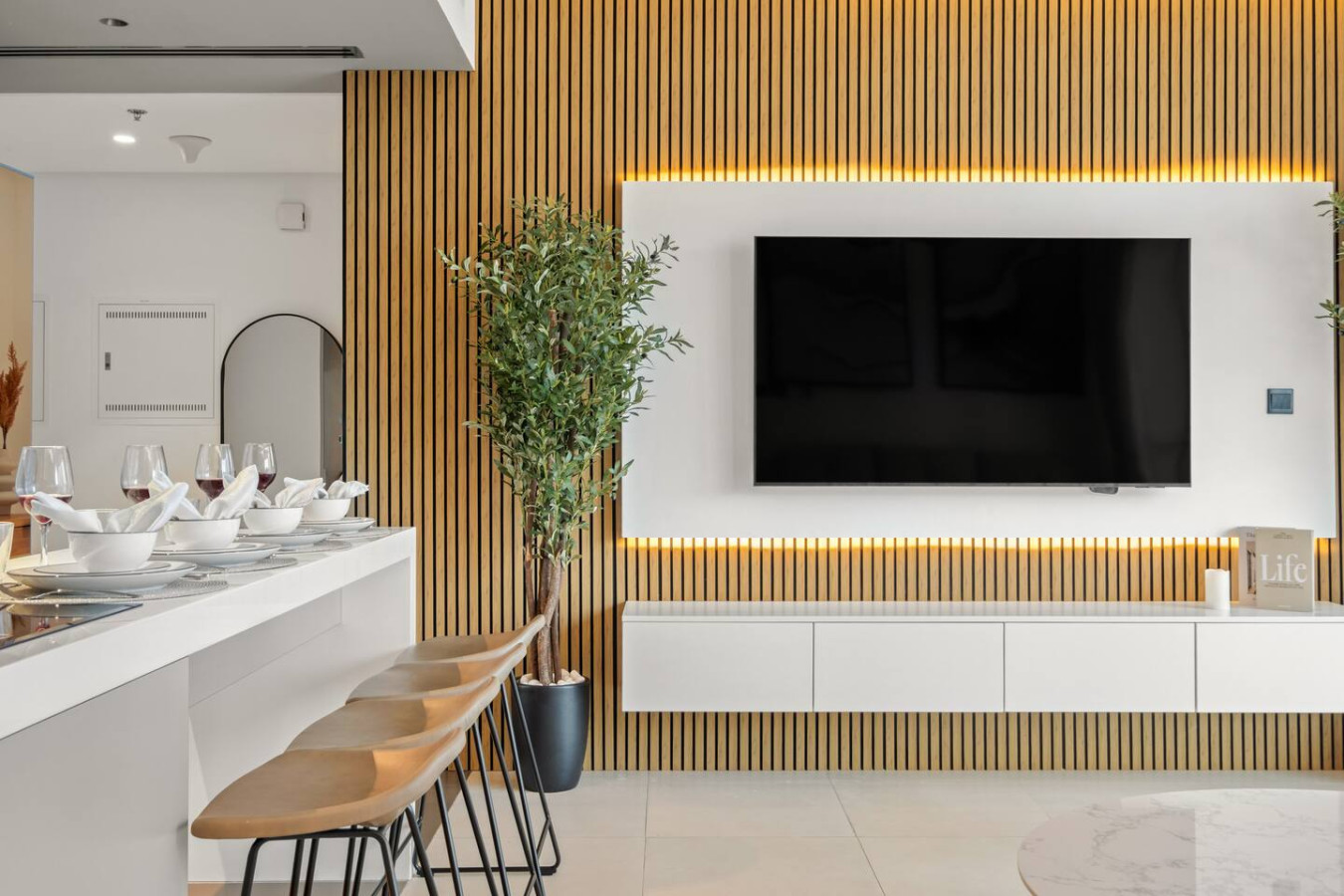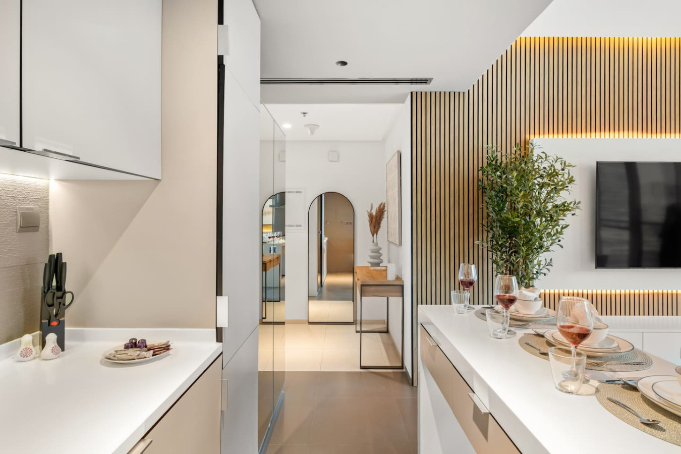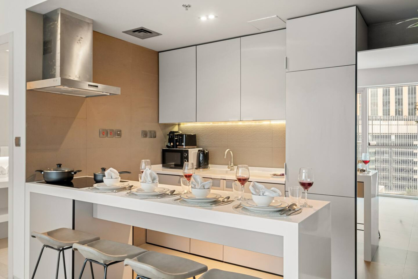 It is fully equipped with stainless-steel cooking appliances that make it suitable for preparing any meal, whether a simple breakfast, quick snack or a three-course gourmet dinner. Spacious quartz countertops and a central kitchen island provide plenty of room to work your MasterChef magic.