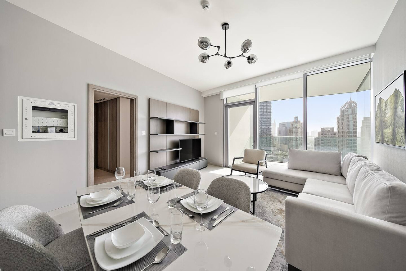Experience stunning 🌊 Marina views from your private balcony in this stylish 1BR apartment! 🏙️ With sleek design, high-end finishes & cozy elegance, it’s the perfect Dubai escape. Enjoy direct access to Marina Walk 🚶♂️ & steps to JBR Beach 🏖️. Ideal for couples or family trips , the space blends modern comfort with luxury touches. Whether you relax inside or explore nearby, your stay promises both charm & convenience