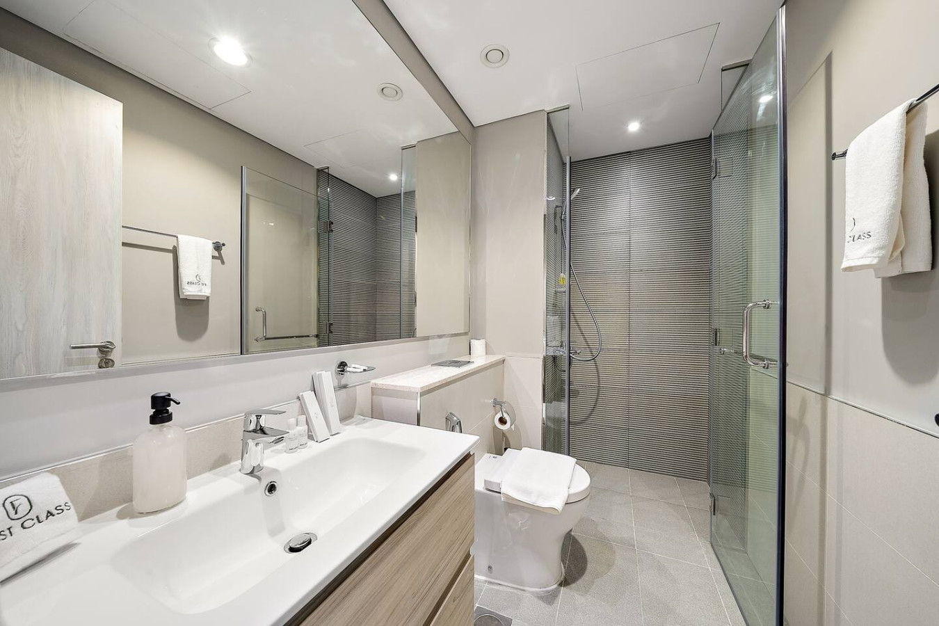The bathroom is stocked with fresh towels and essential toiletries, so you don’t have to worry about bringing your own.