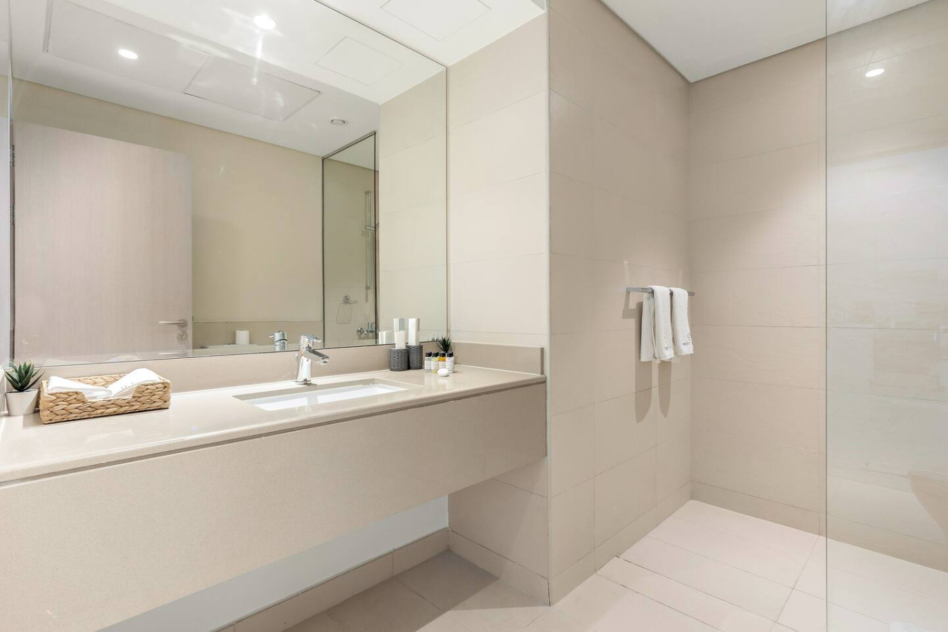 The bathroom is stocked with fresh towels and essential toiletries, so you don’t have to worry about bringing your own.