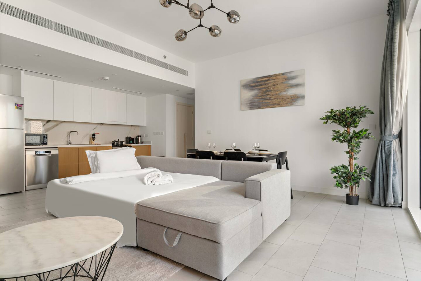 🌊 Discover coastal luxury in this stylish 1-bedroom beachfront apartment! 🌅 Steps from the sand, nightlife, and top dining spots, enjoy the perfect blend of beach vibes and city charm. 🚶♂️ Walk to the tram & metro for easy exploring. Floor-to-ceiling windows fill the space with light, while elegant furnishings offer comfort & style. ✨ Your dream Dubai escape starts here—book now for an unforgettable stay! 🏖️🌟