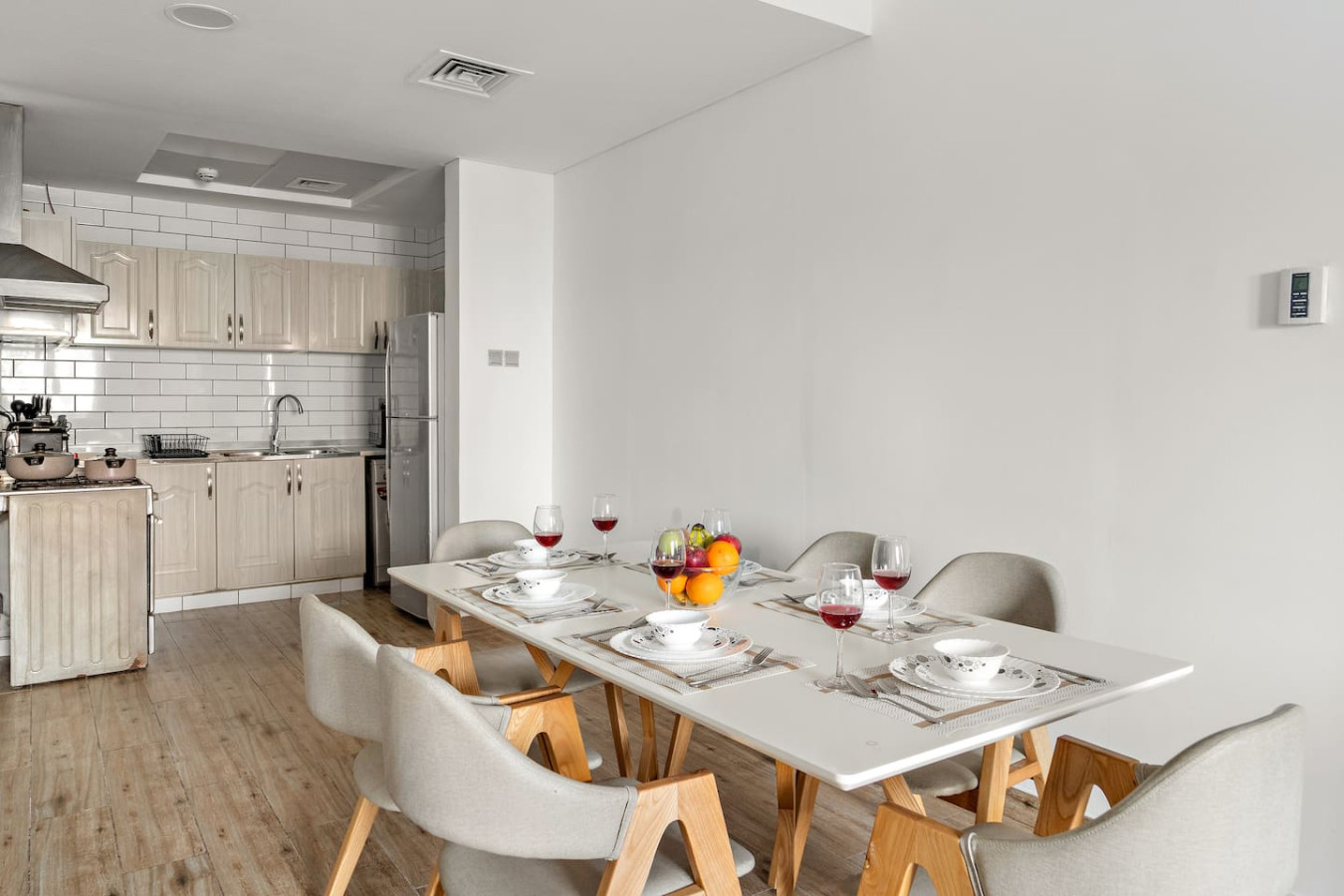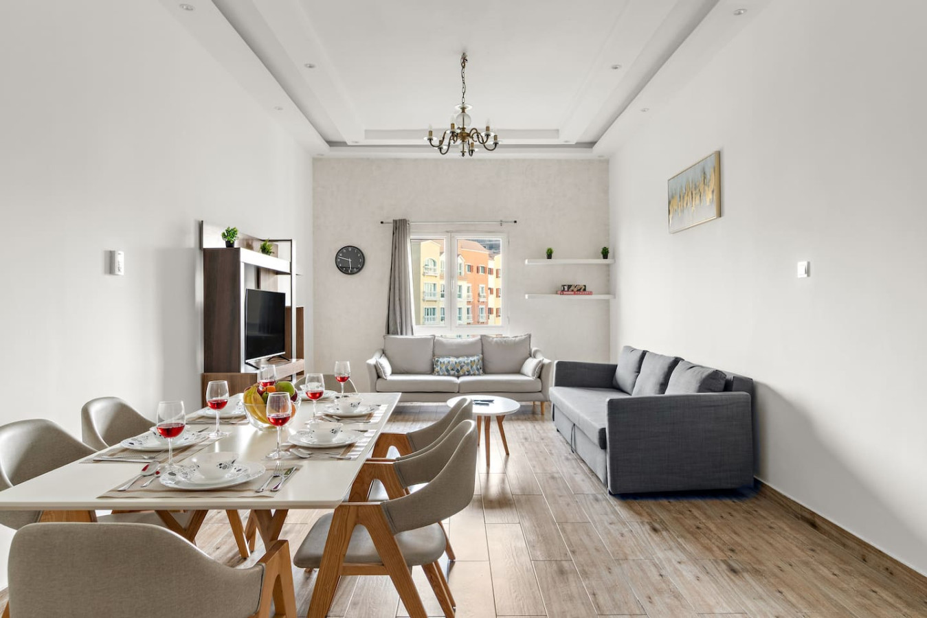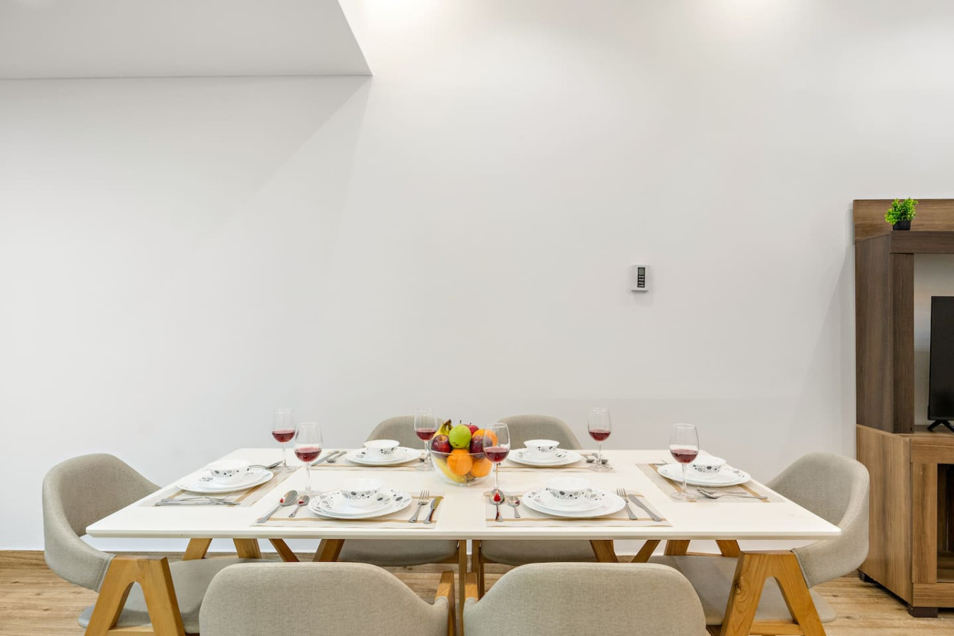 Have a few drinks in the living room while the food is getting ready. Once it’s done, serve it at the inviting dining table and enjoy a tasty meal with your loved ones.