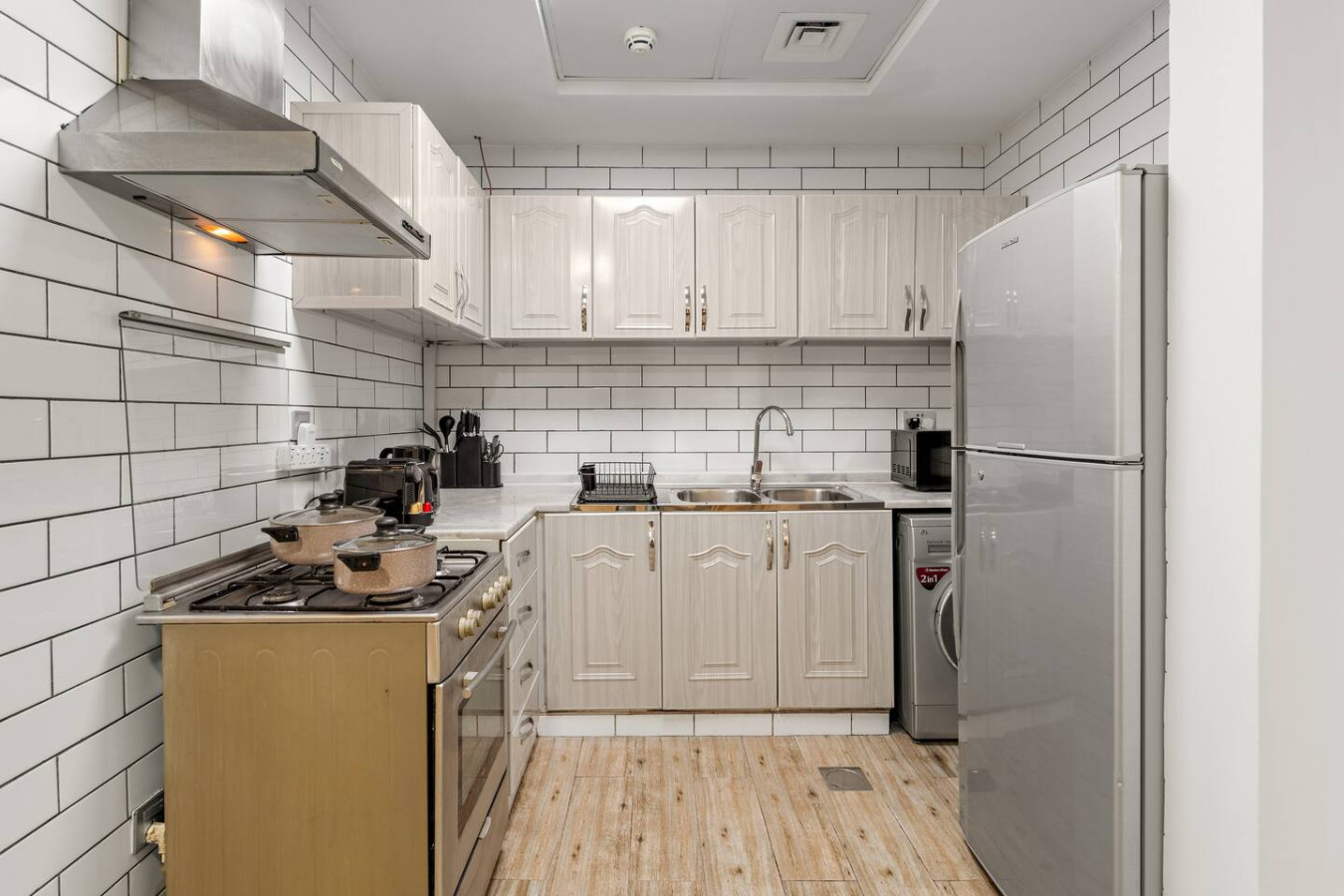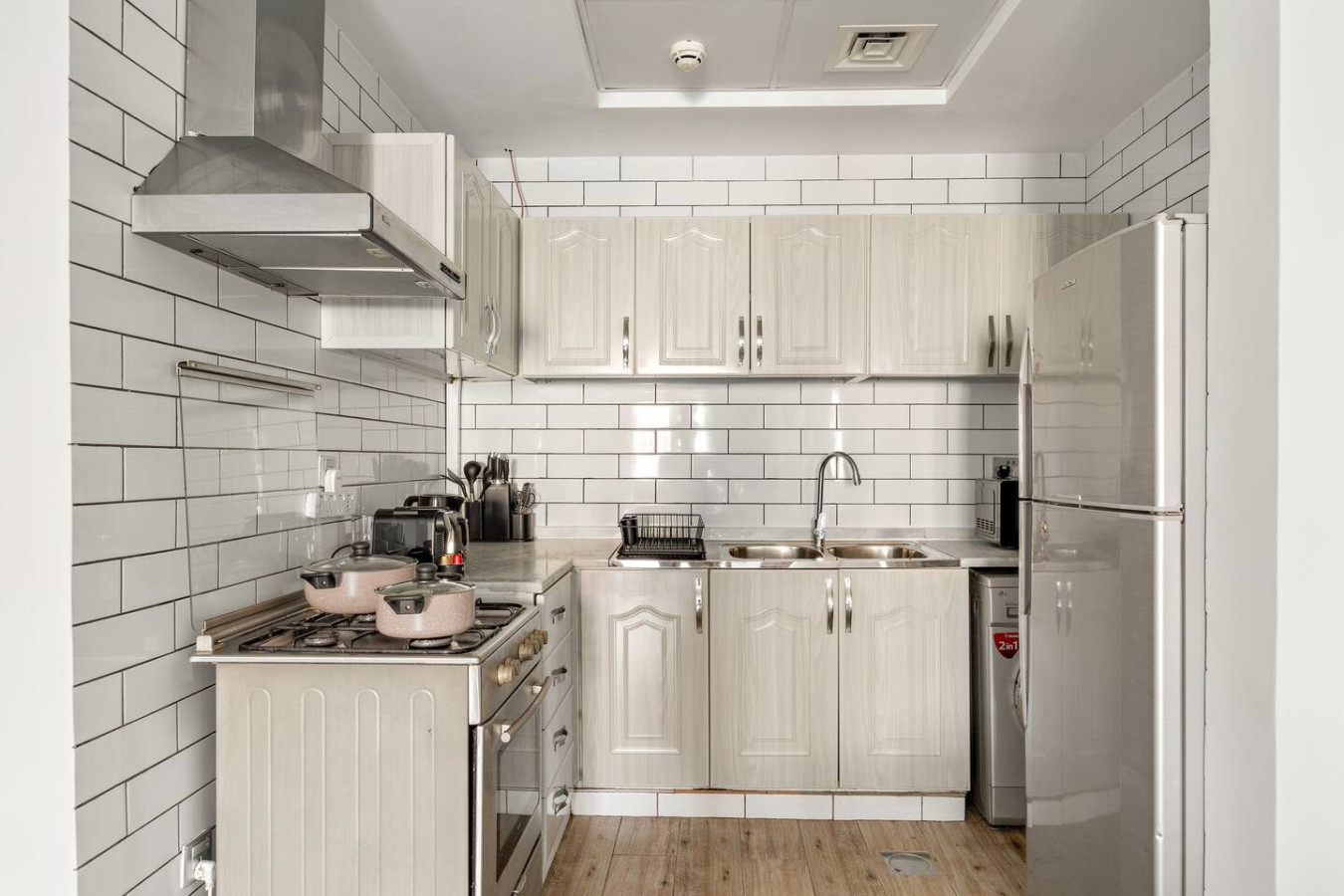 It is fully equipped with stainless-steel cooking appliances that make it suitable for preparing any meal, whether a simple breakfast, quick snack or a three-course gourmet dinner.