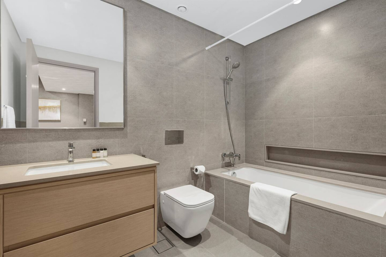The bathroom is stocked with fresh towels and essential toiletries, so you don’t have to worry about bringing your own.
