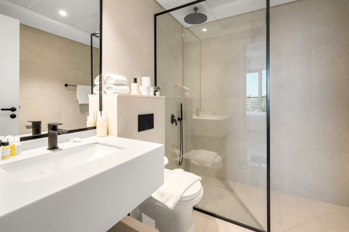 The bathroom is stocked with fresh towels and essential toiletries, so you don’t have to worry about bringing your own.