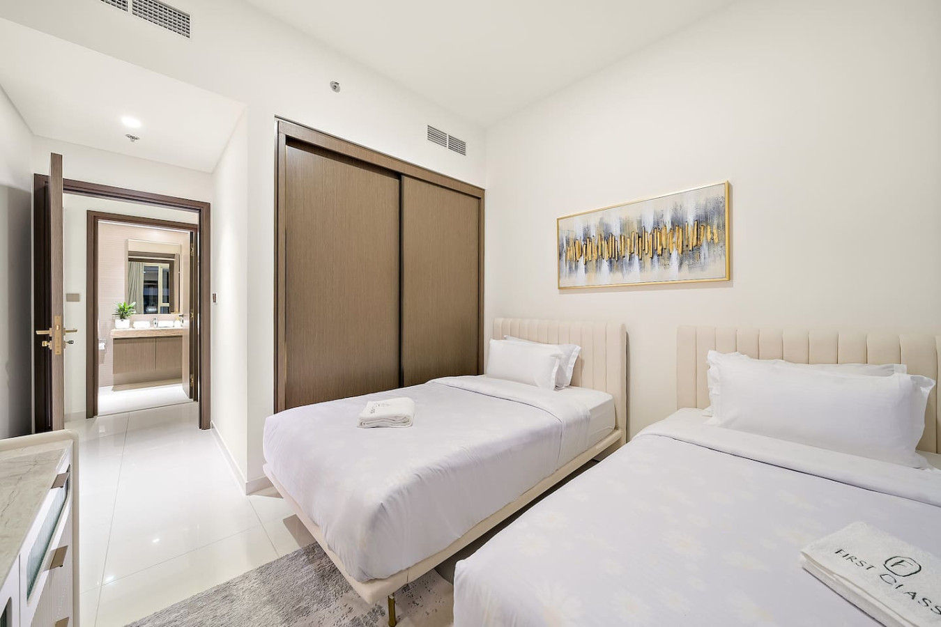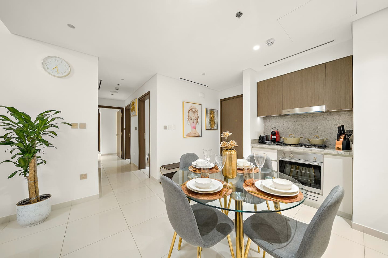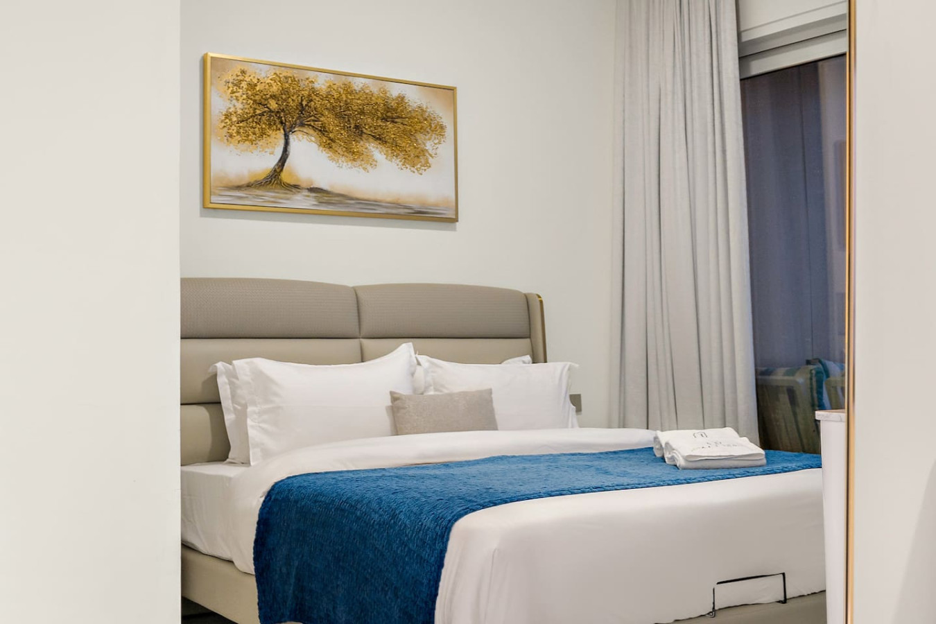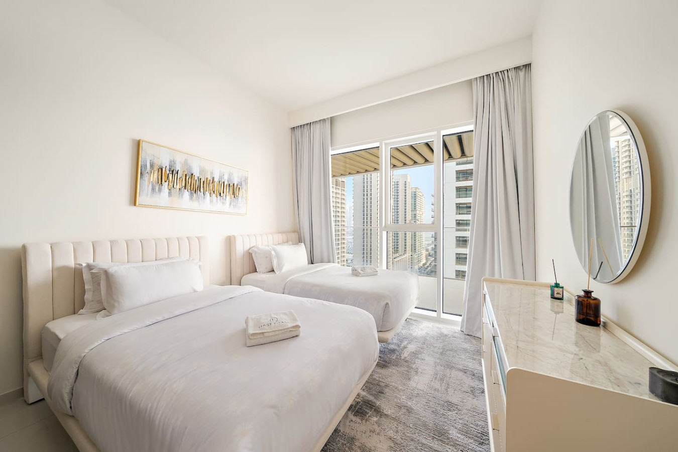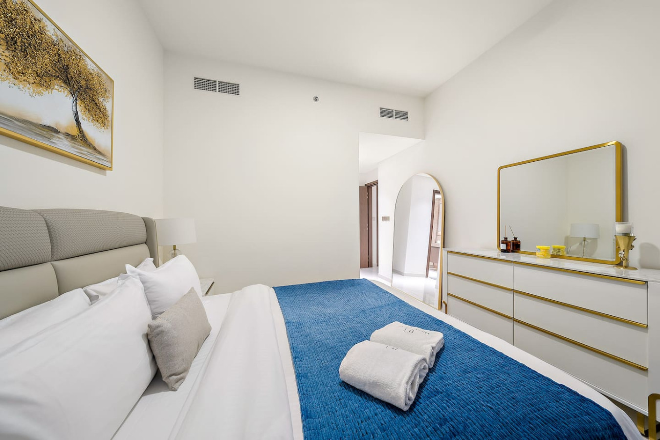 Welcome to your exclusive getaway at Grand Bleu Tower 🌊. This luxurious 2-bedroom apartment features stylish interiors and direct access to a private beach 🏖️. Perfect for families 👨👩👧, couples 💑, or business travelers 💼. Minutes from Dubai Harbour & Palm Jumeirah, it offers all the comforts for a memorable stay. Immerse yourself in elegance, views, and beachfront living.