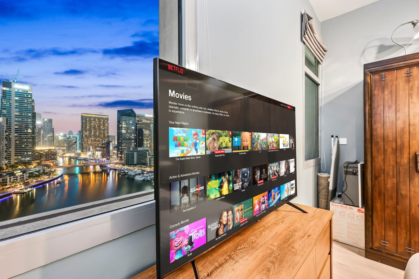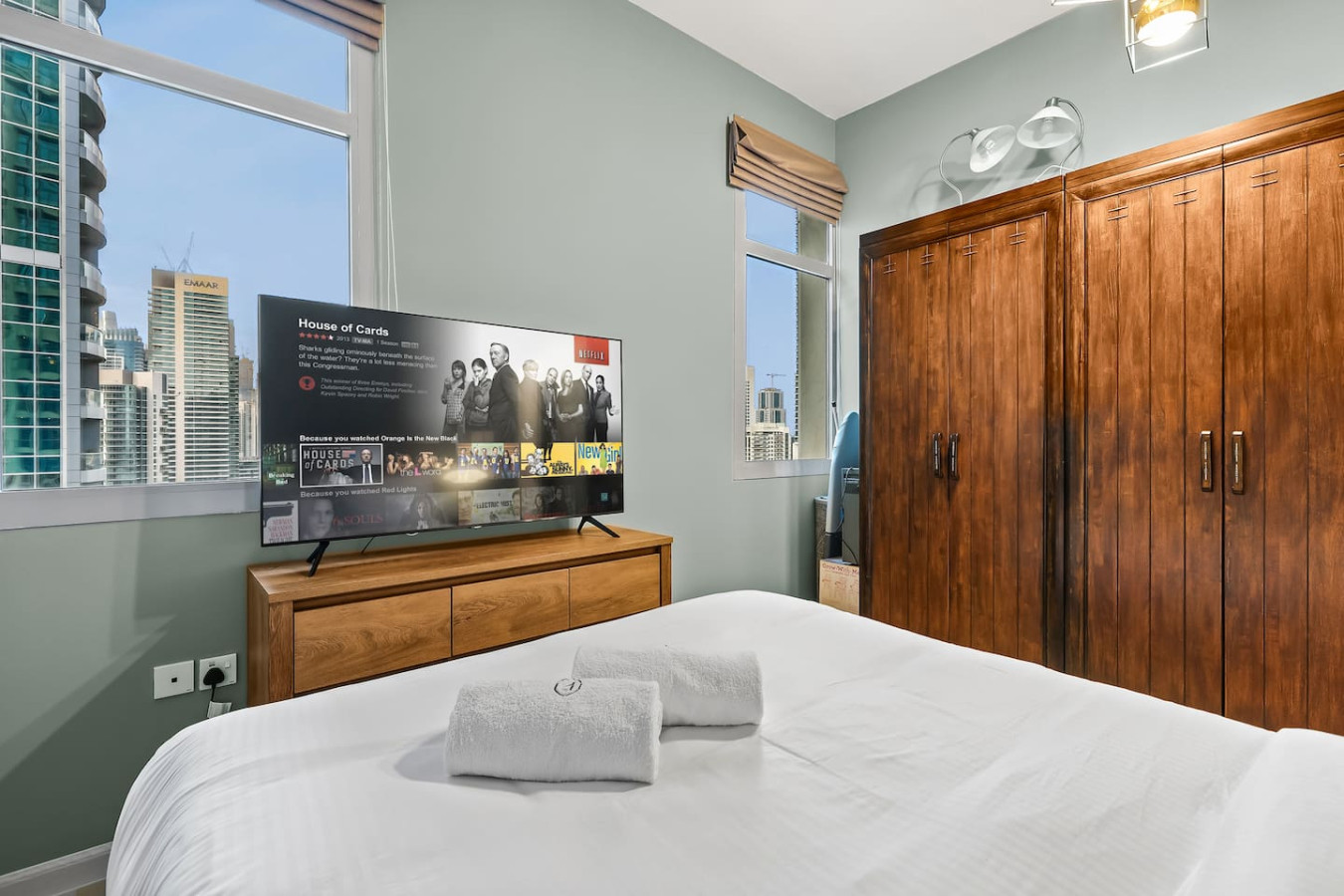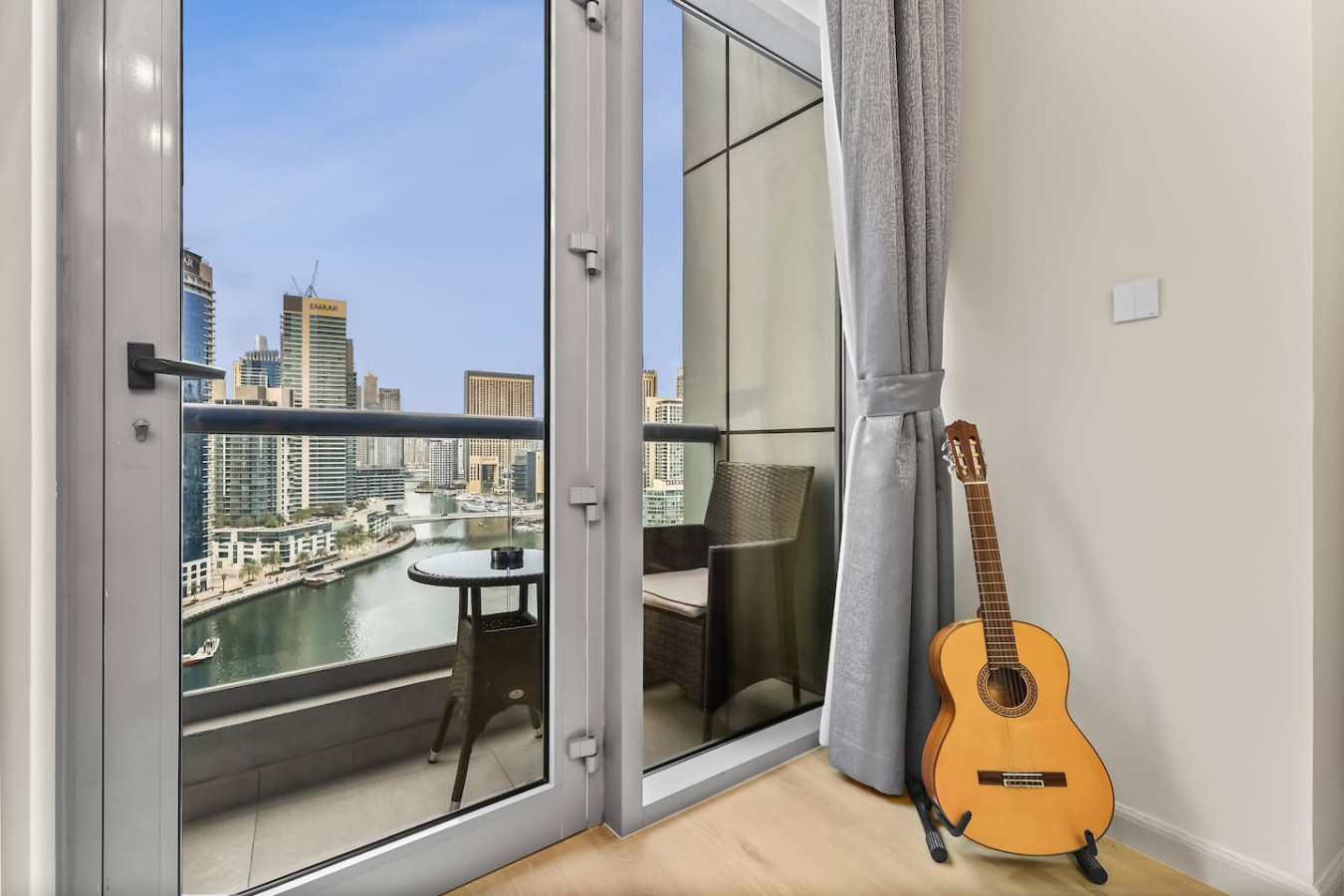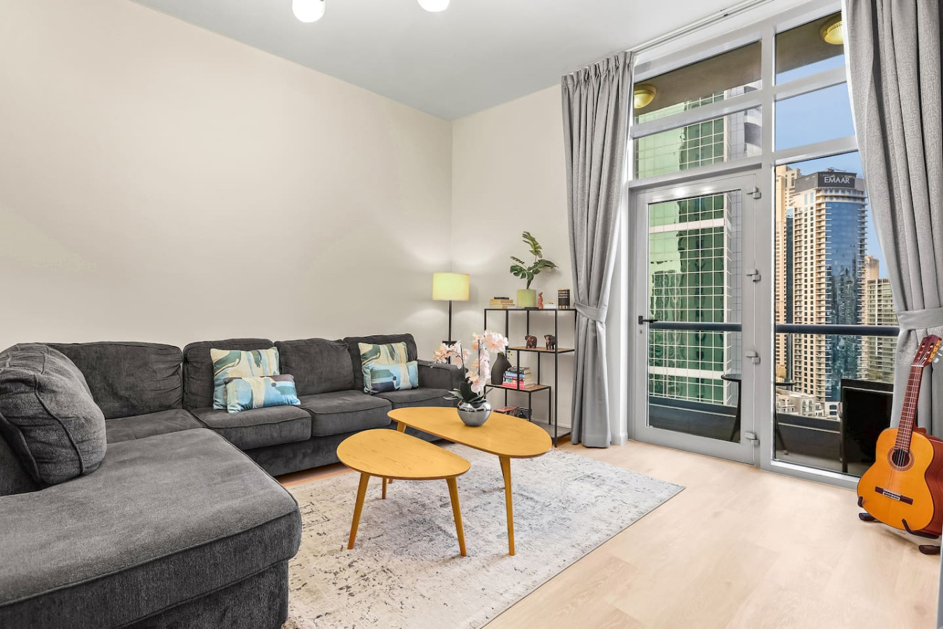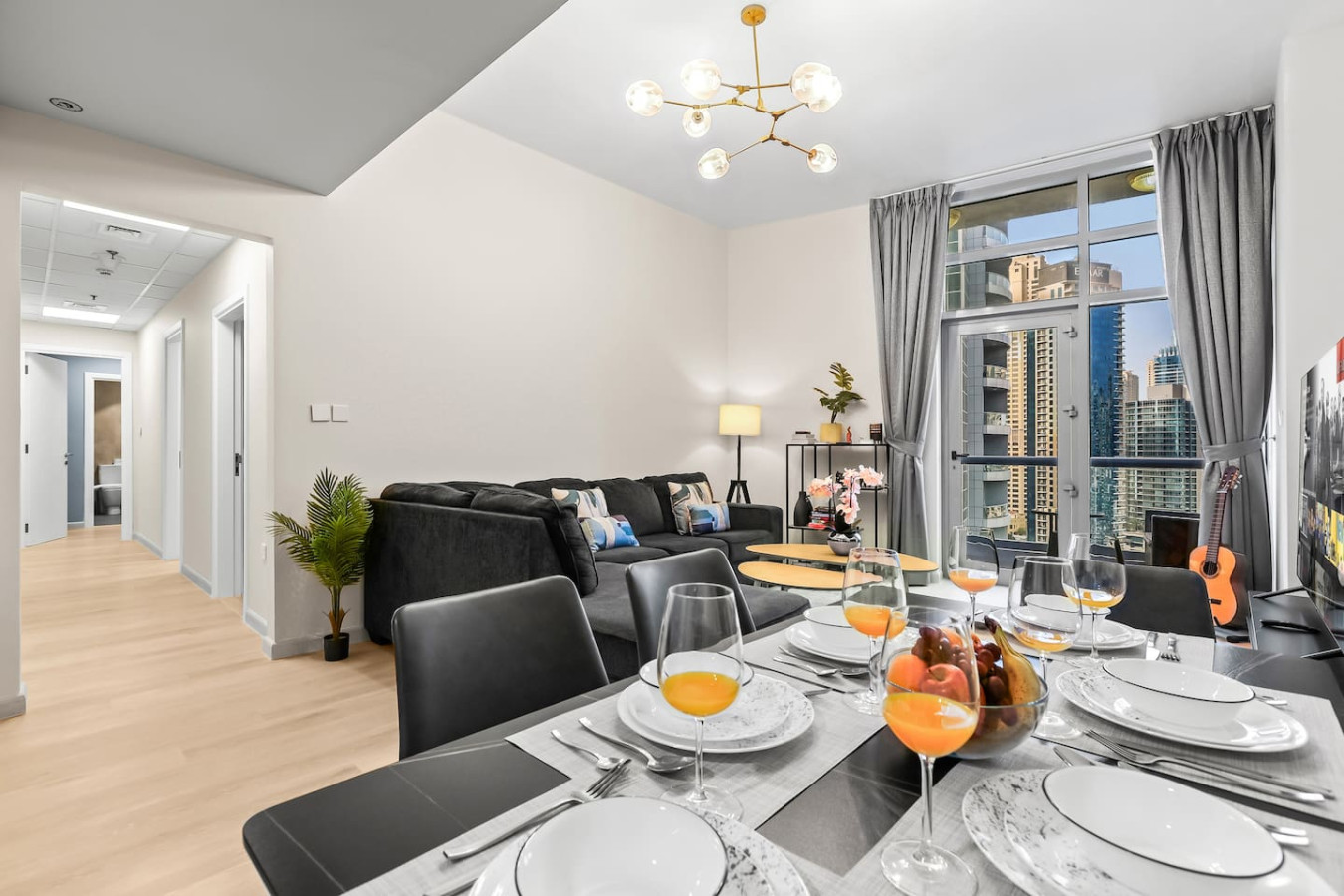 Experience stylish living in this modern 2-bedroom apartment with stunning Marina views 🌊✨ Perfectly located with easy access to Marina Walk, JBR, and top attractions. Relax on the balcony or unwind in a warm, thoughtfully designed space 🛋️ The interiors blend contemporary style with cozy comfort, creating the perfect urban retreat. Ideal for families or friends seeking convenience, elegance, and a memorable Dubai stay 🌴🏙️