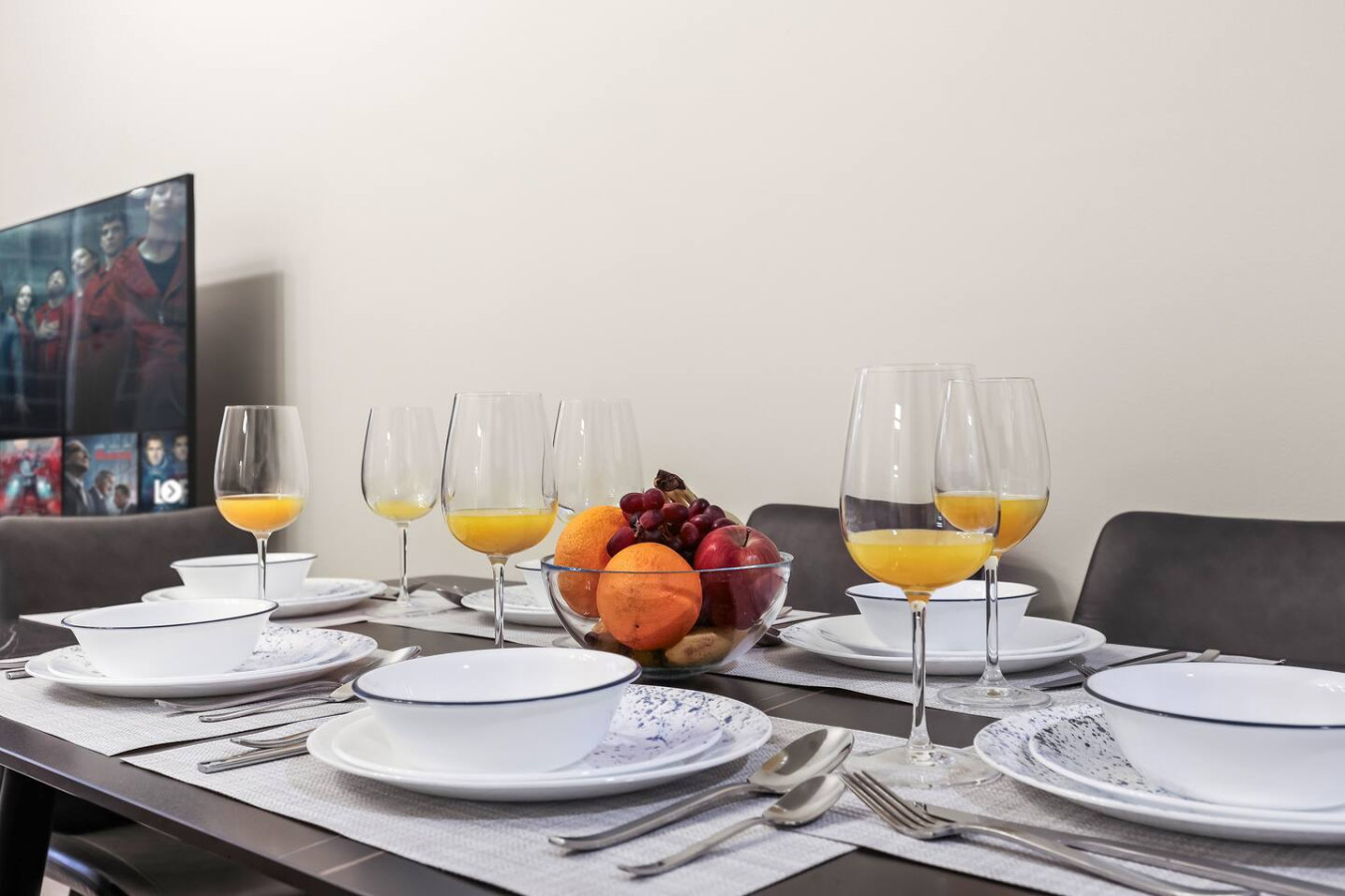 Have a few drinks in the living room while the food is getting ready. Once it’s done, serve it at the inviting dining table and enjoy a tasty meal with your loved ones.