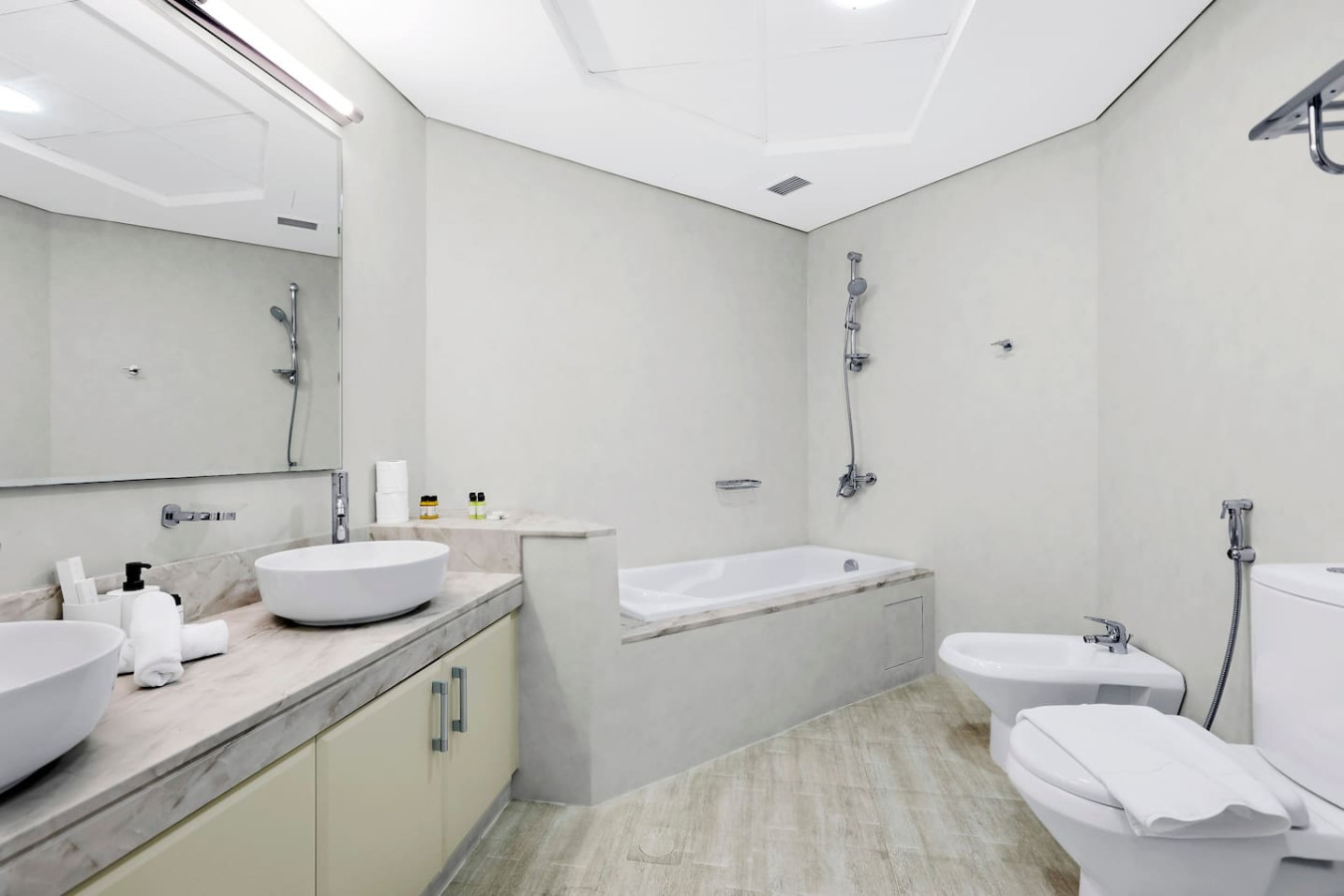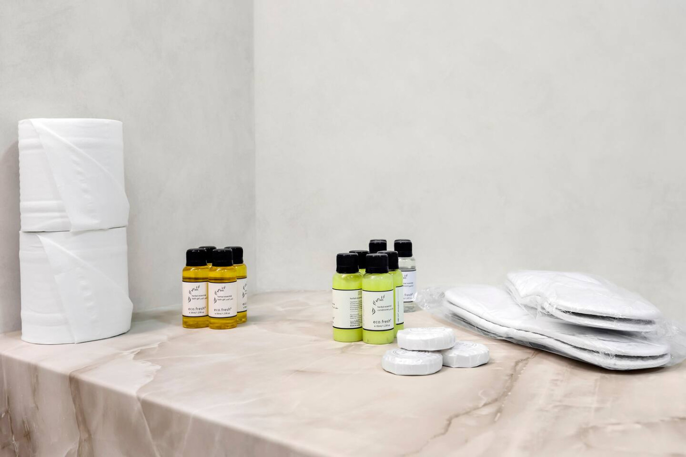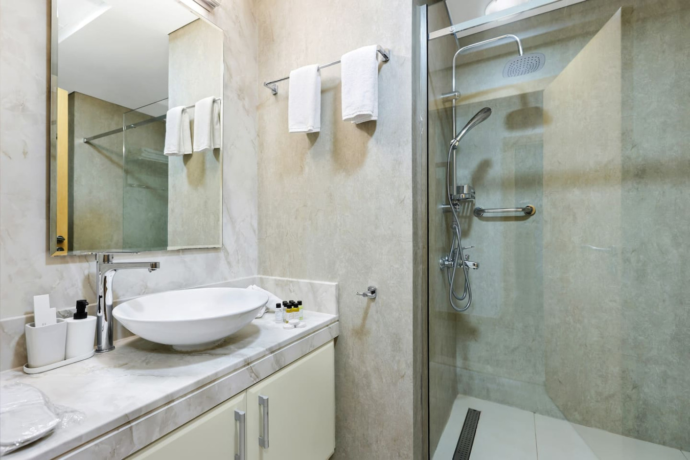 The bathroom is stocked with fresh towels and essential toiletries, so you don’t have to worry about bringing your own.