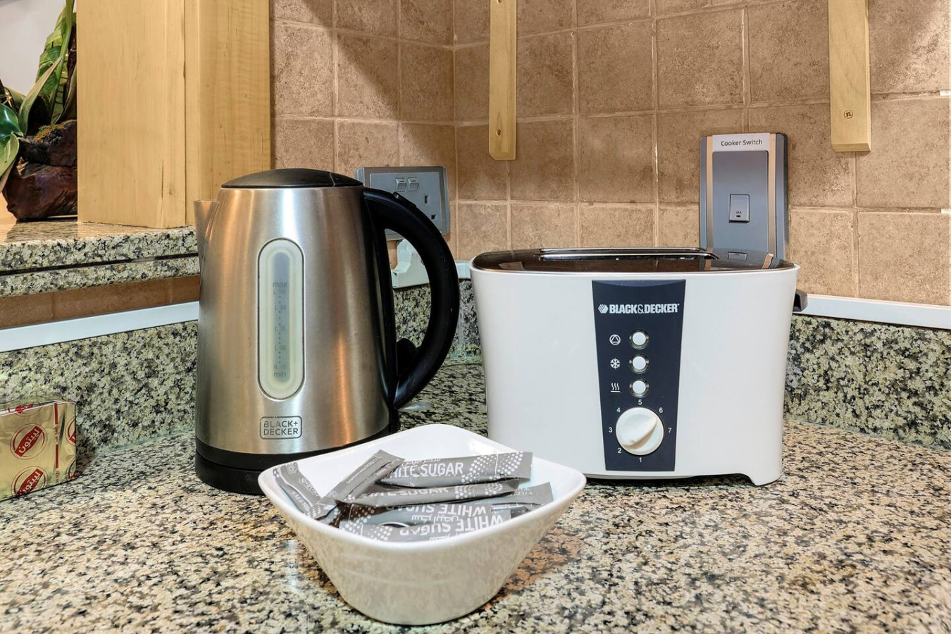 It is fully equipped with stainless-steel cooking appliances that make it suitable for preparing any meal, whether a simple breakfast, quick snack or a three-course gourmet dinner. Spacious quartz countertops and a central kitchen island provide plenty of room to work your MasterChef magic.